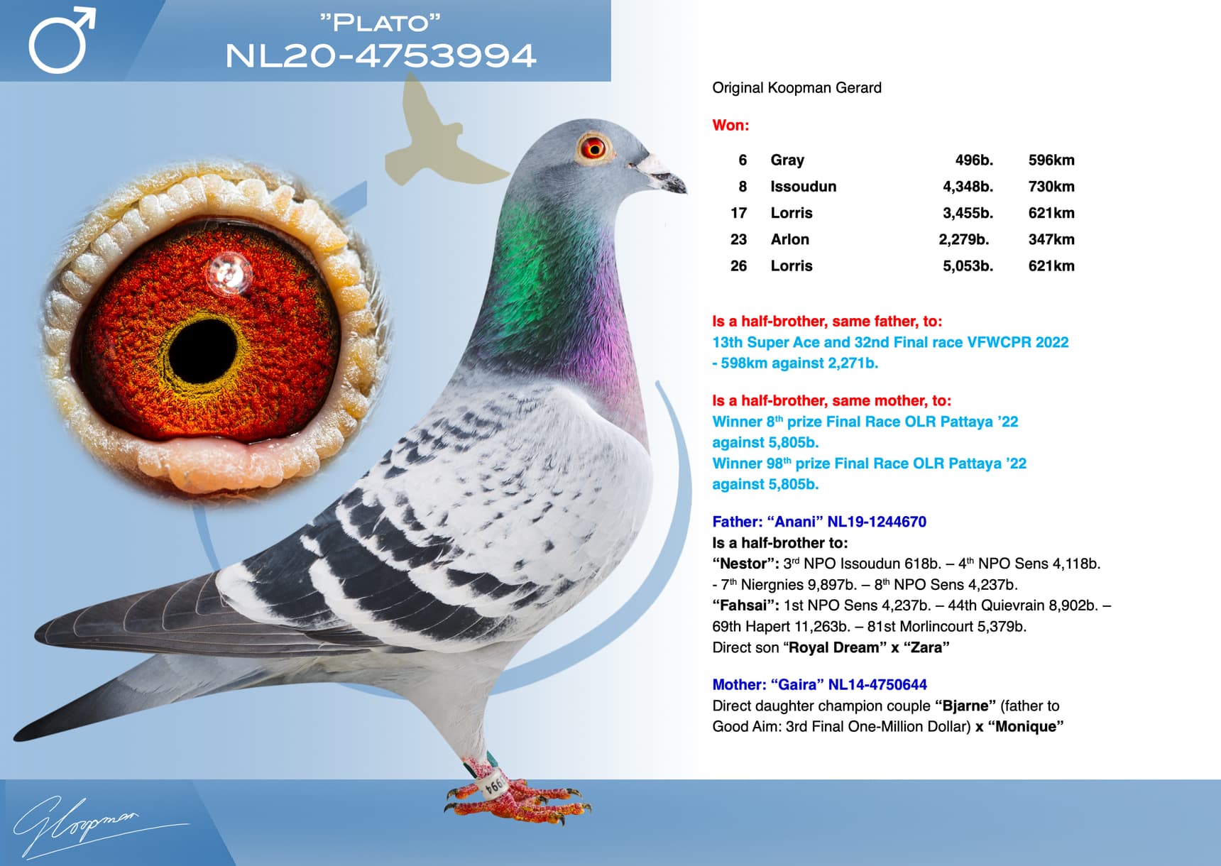 Dans cette vente, nous présentons les pigeons Koopman qui seront vendus publiquement le samedi 7 décembre (nr 1 - 37)