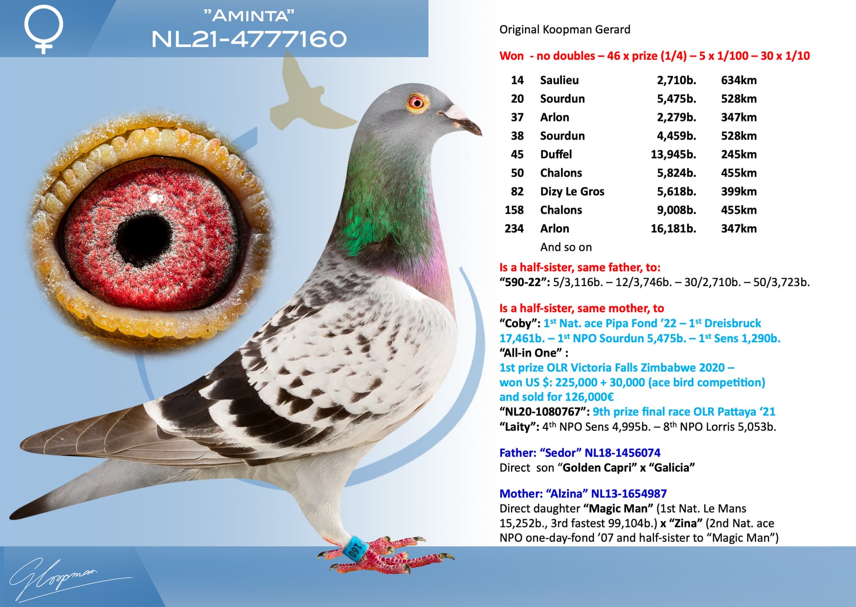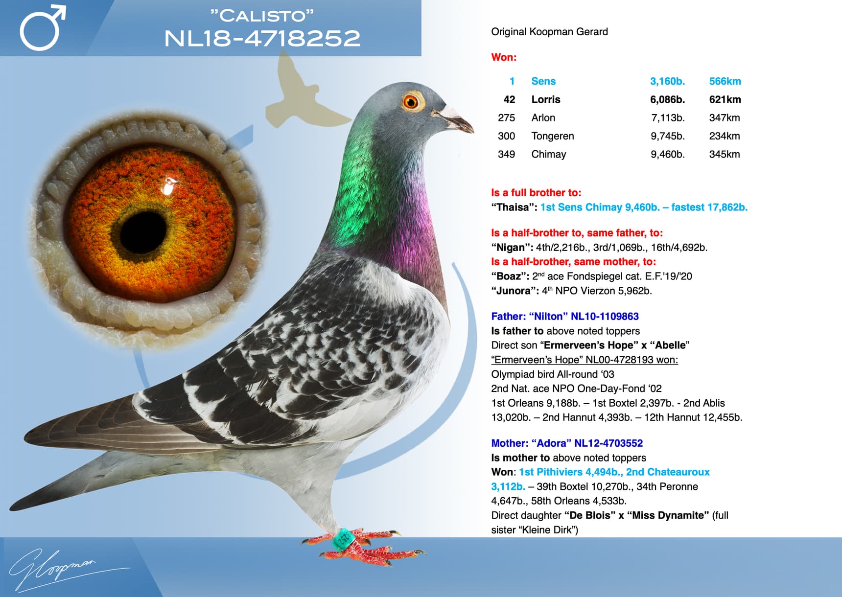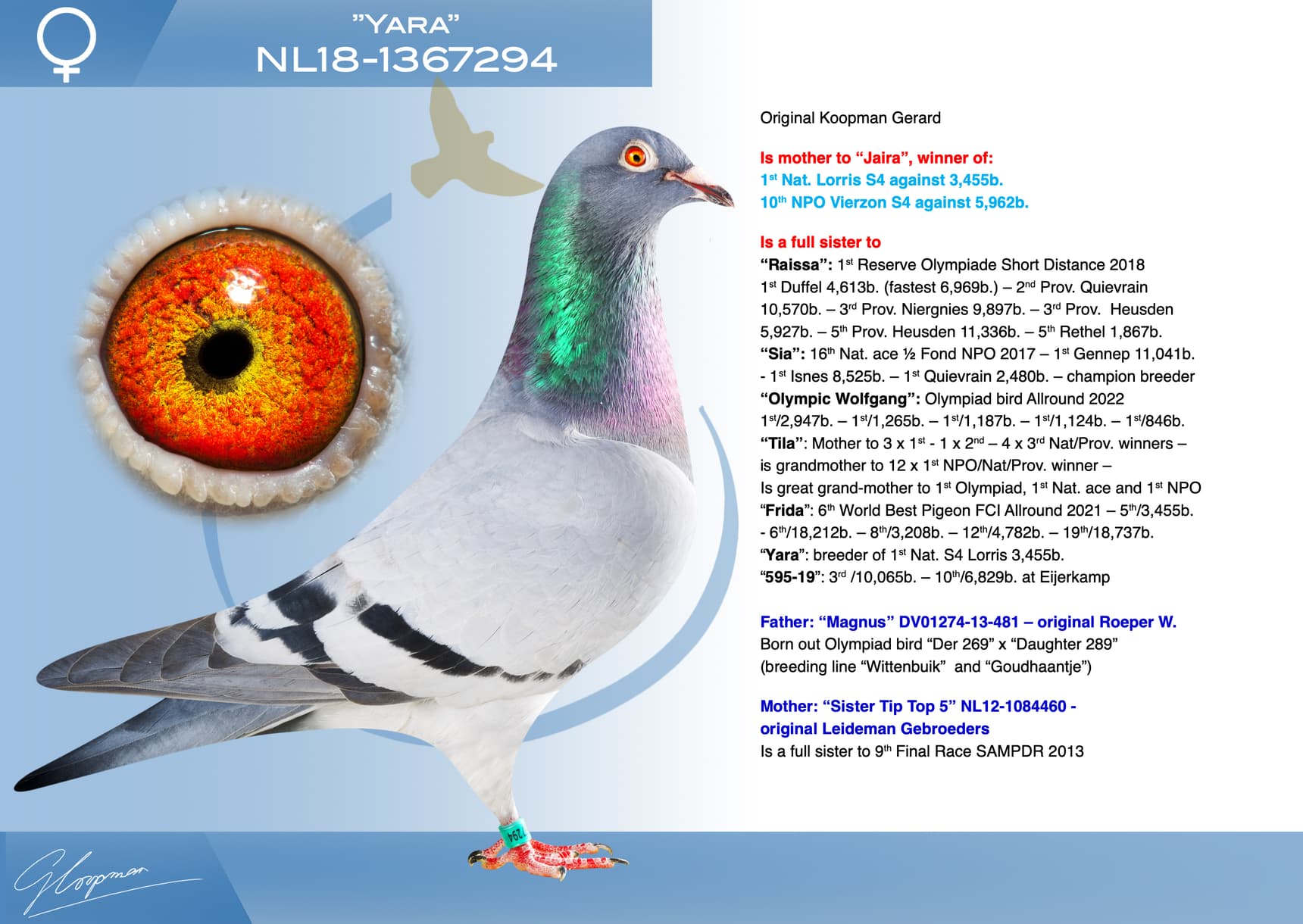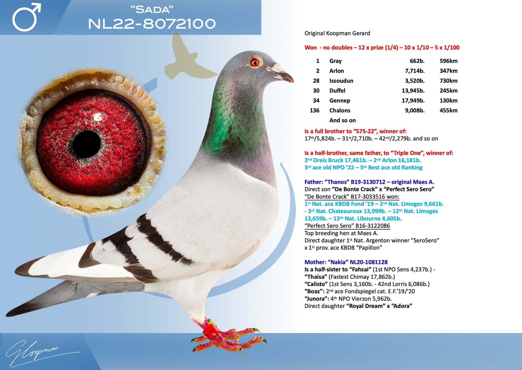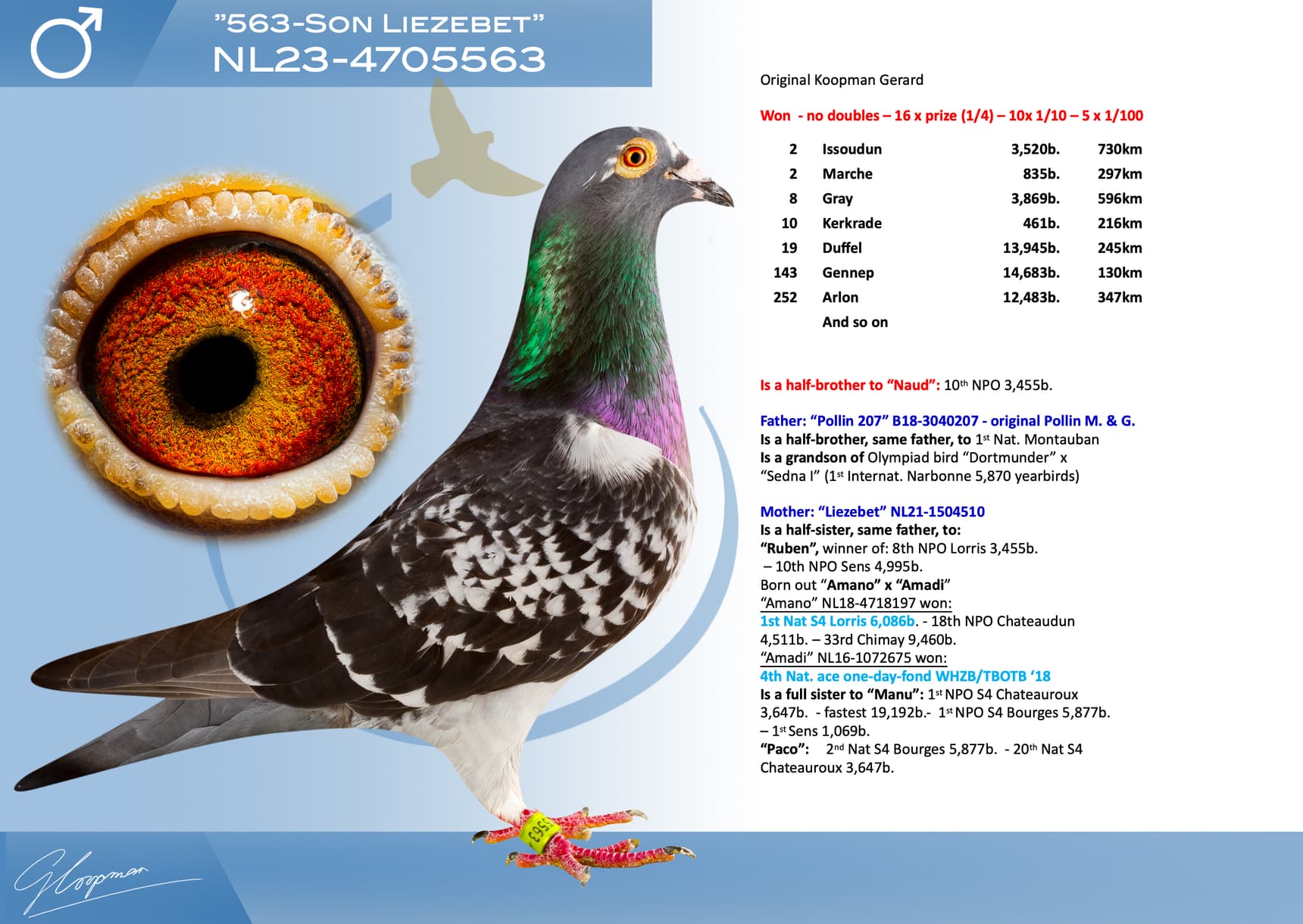 Dans cette vente, nous présentons les pigeons Koopman qui seront vendus publiquement le samedi 7 décembre (nr 38 - 74)