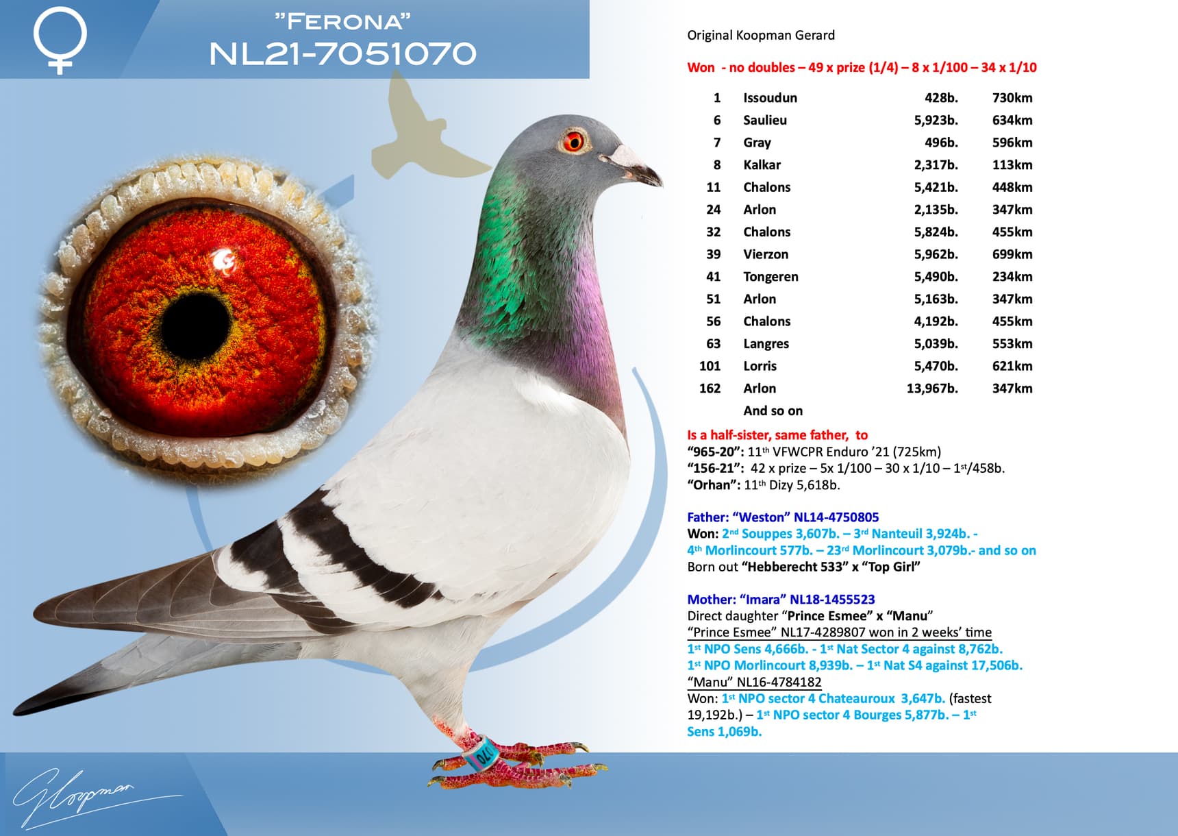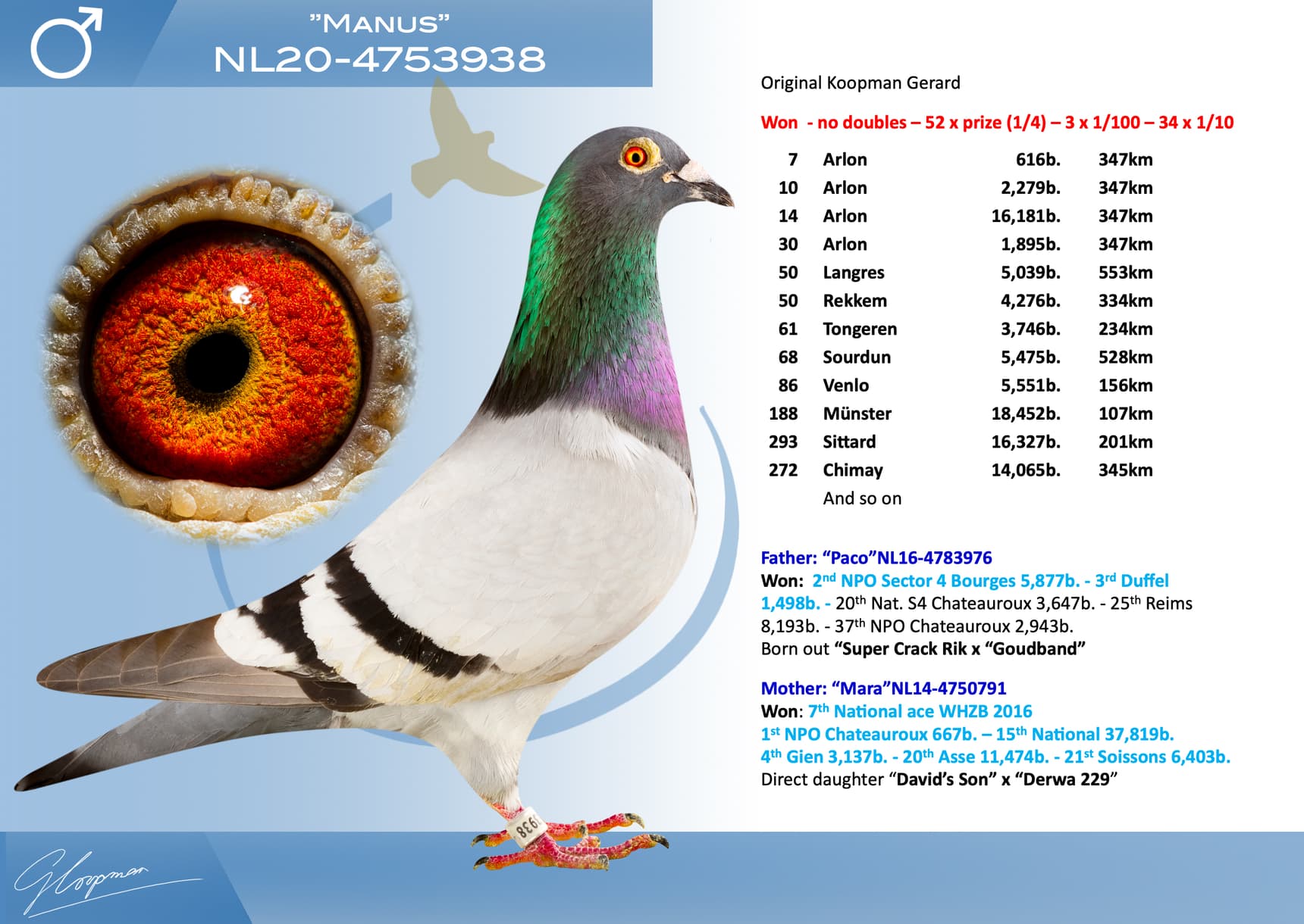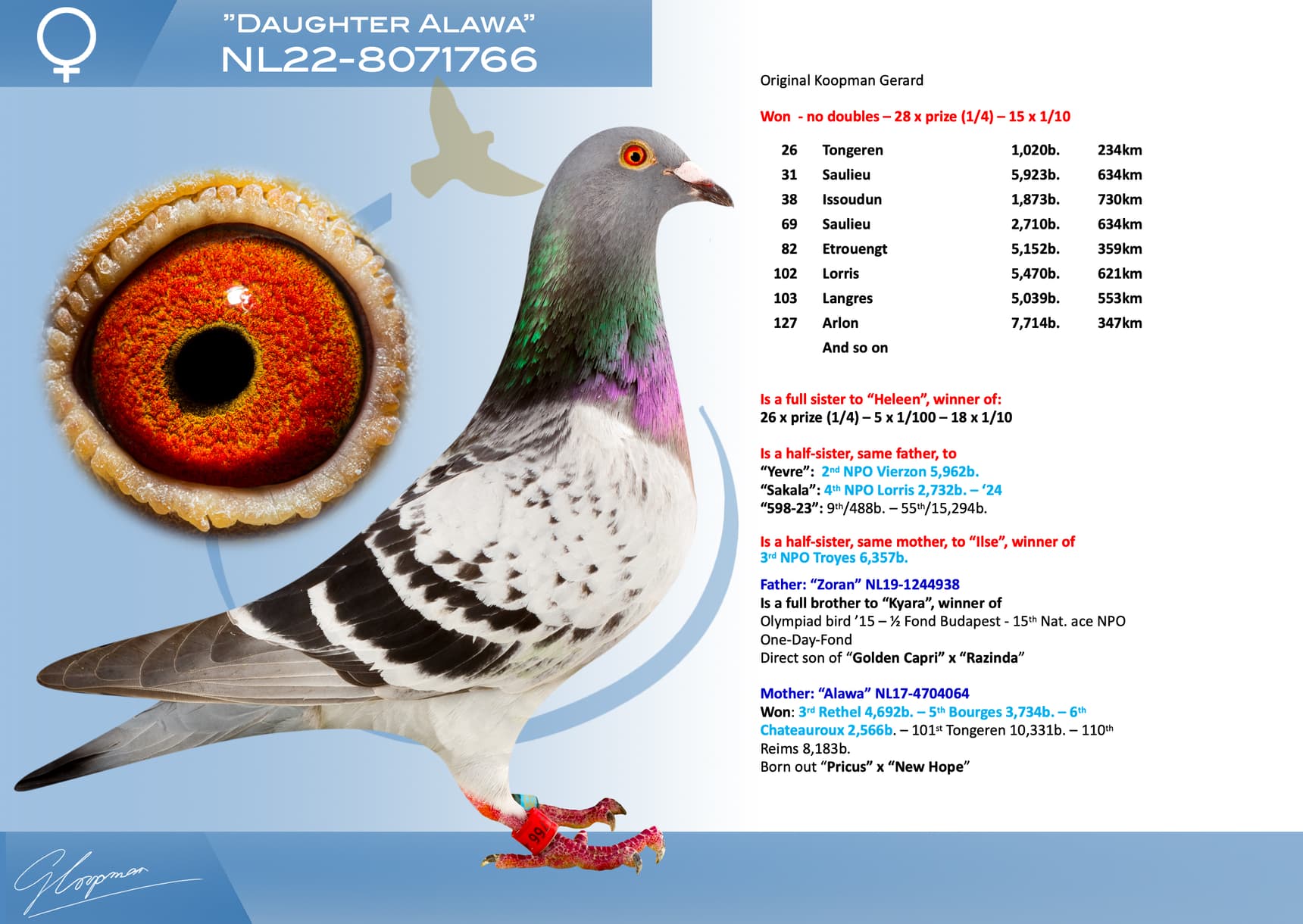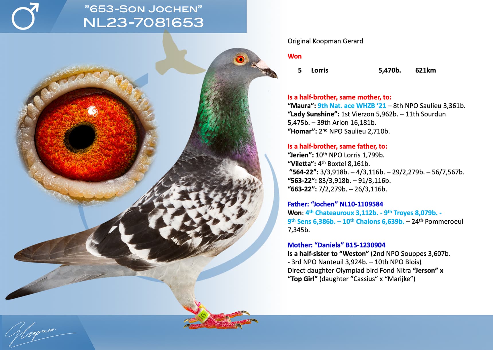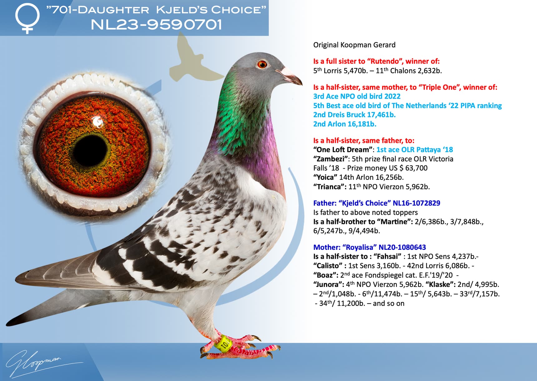 Dans cette vente, nous présentons les pigeons Koopman qui seront vendus publiquement le samedi 7 décembre (nr 38 - 74)