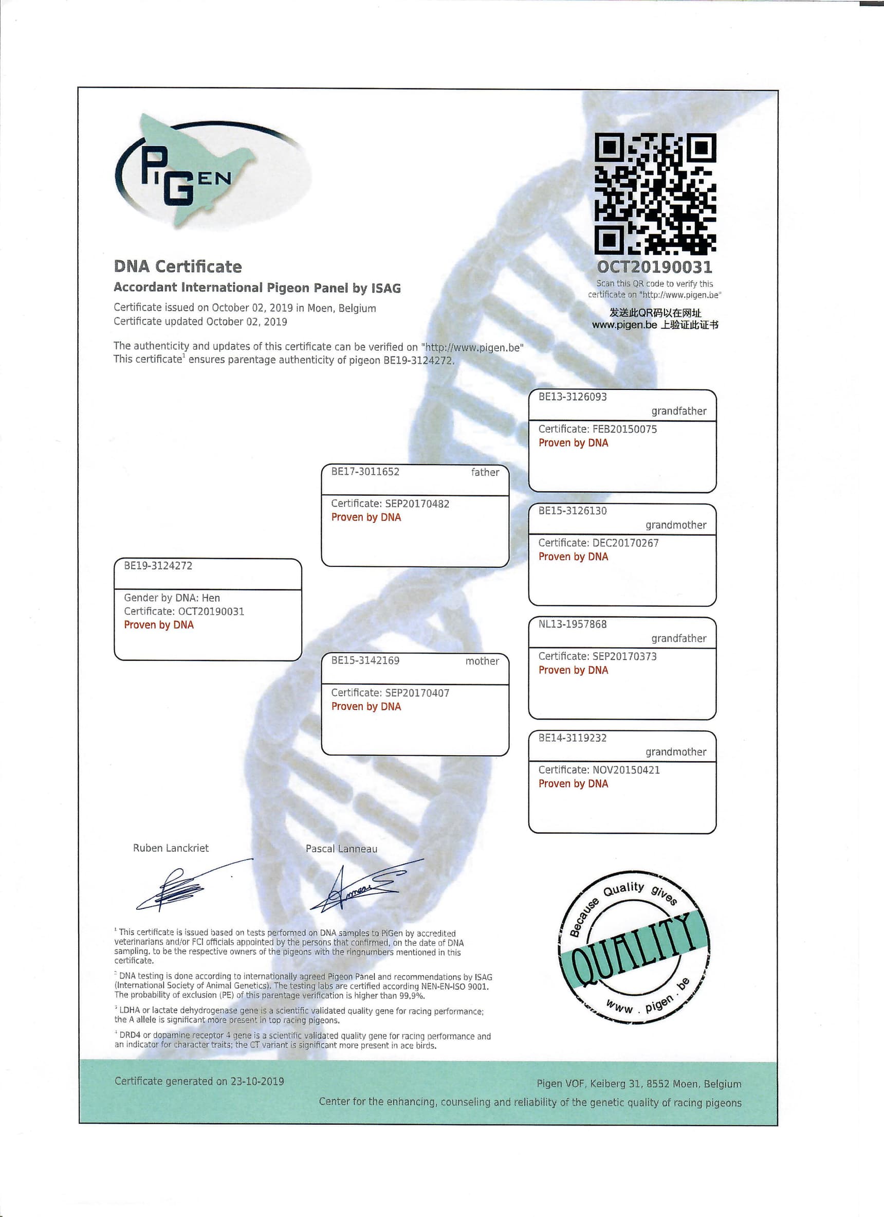 Direct daughter “Son Zidane” (NL13-1957868 – original Willem de Bruijn) x “Gueretje” (daughter 2nd Nat. ace KBDB Great Middle Distance)