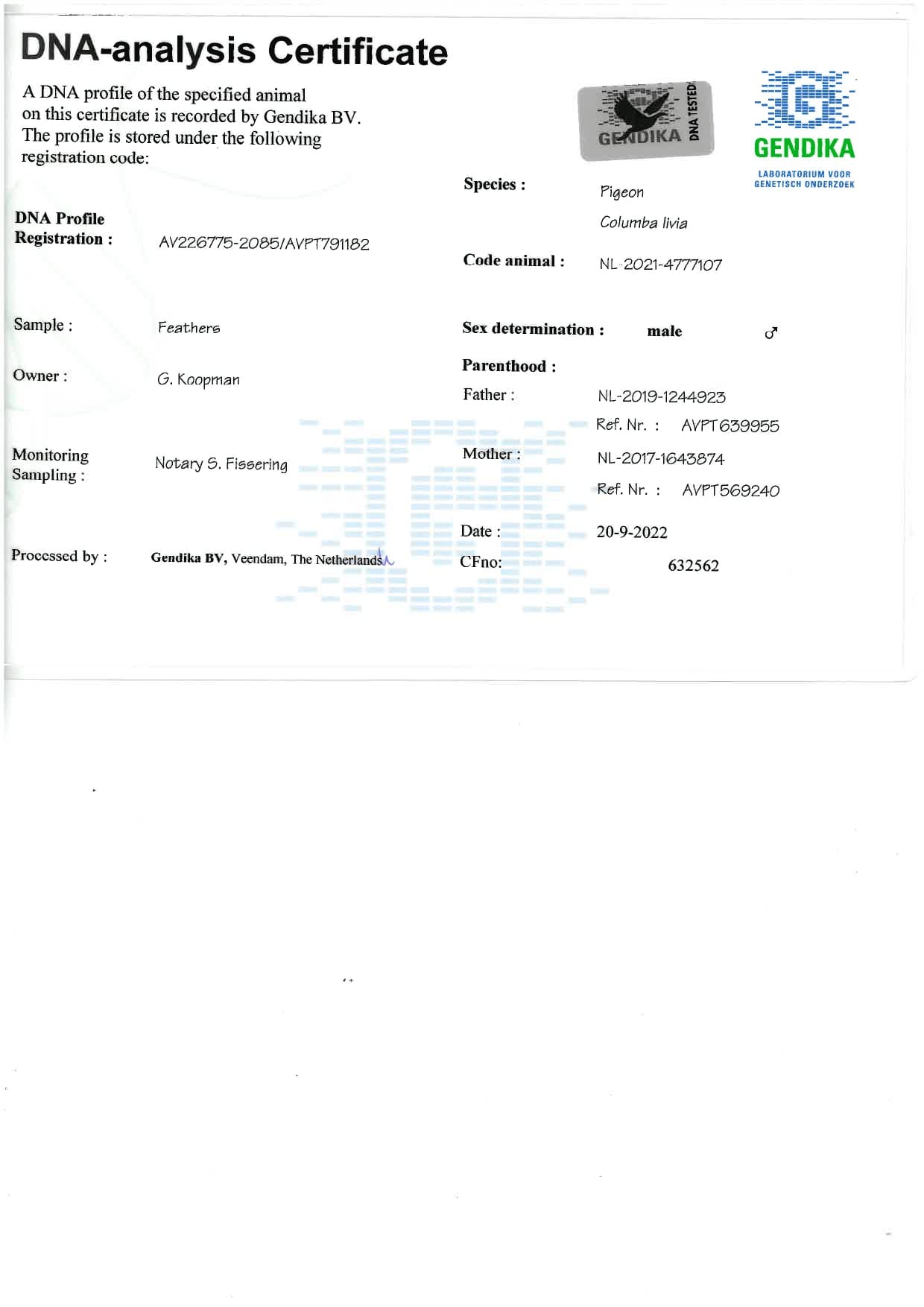 Born out basebreeder “Supercrack Rik” x his daughter “Manu” (1st NPO Chateauroux 3,647b. - fastest 19,192b.- 1st NPO Bourges
