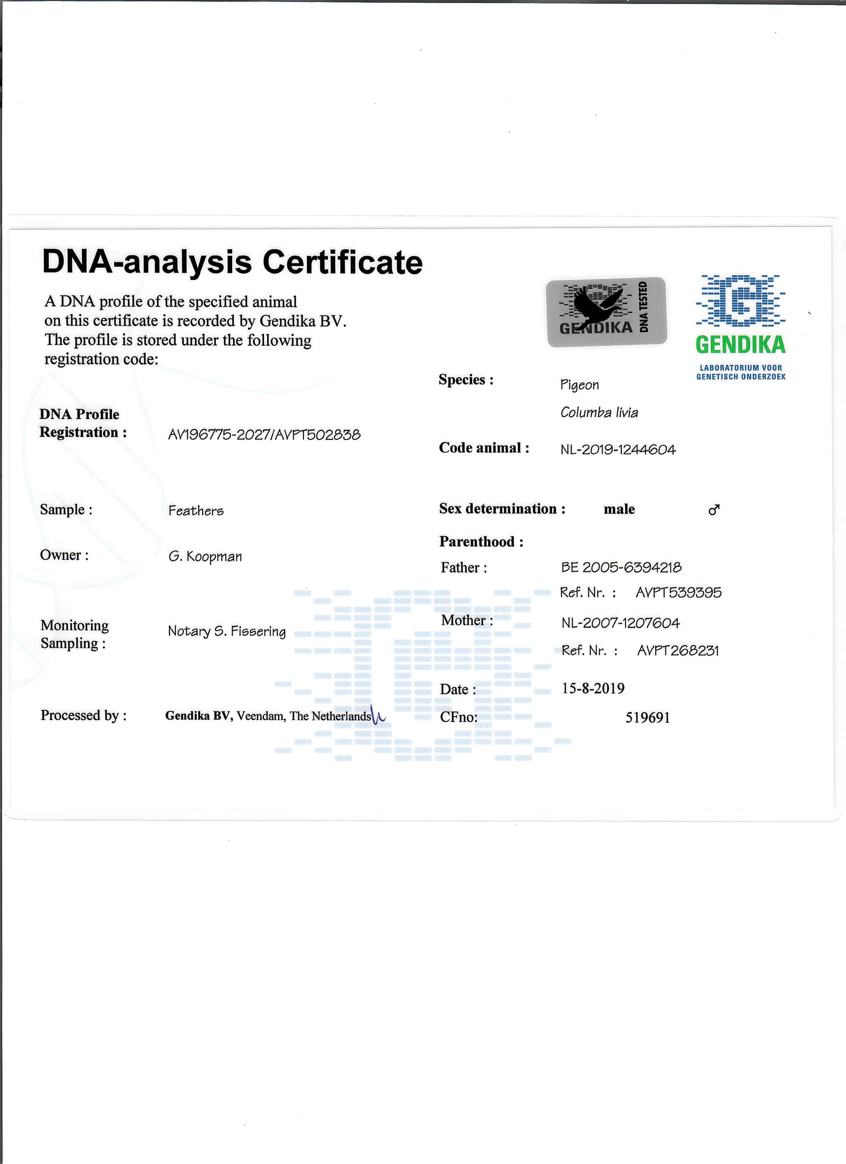 Father: “Supercrack Rik” B05-6394218 – original Van Sande H.