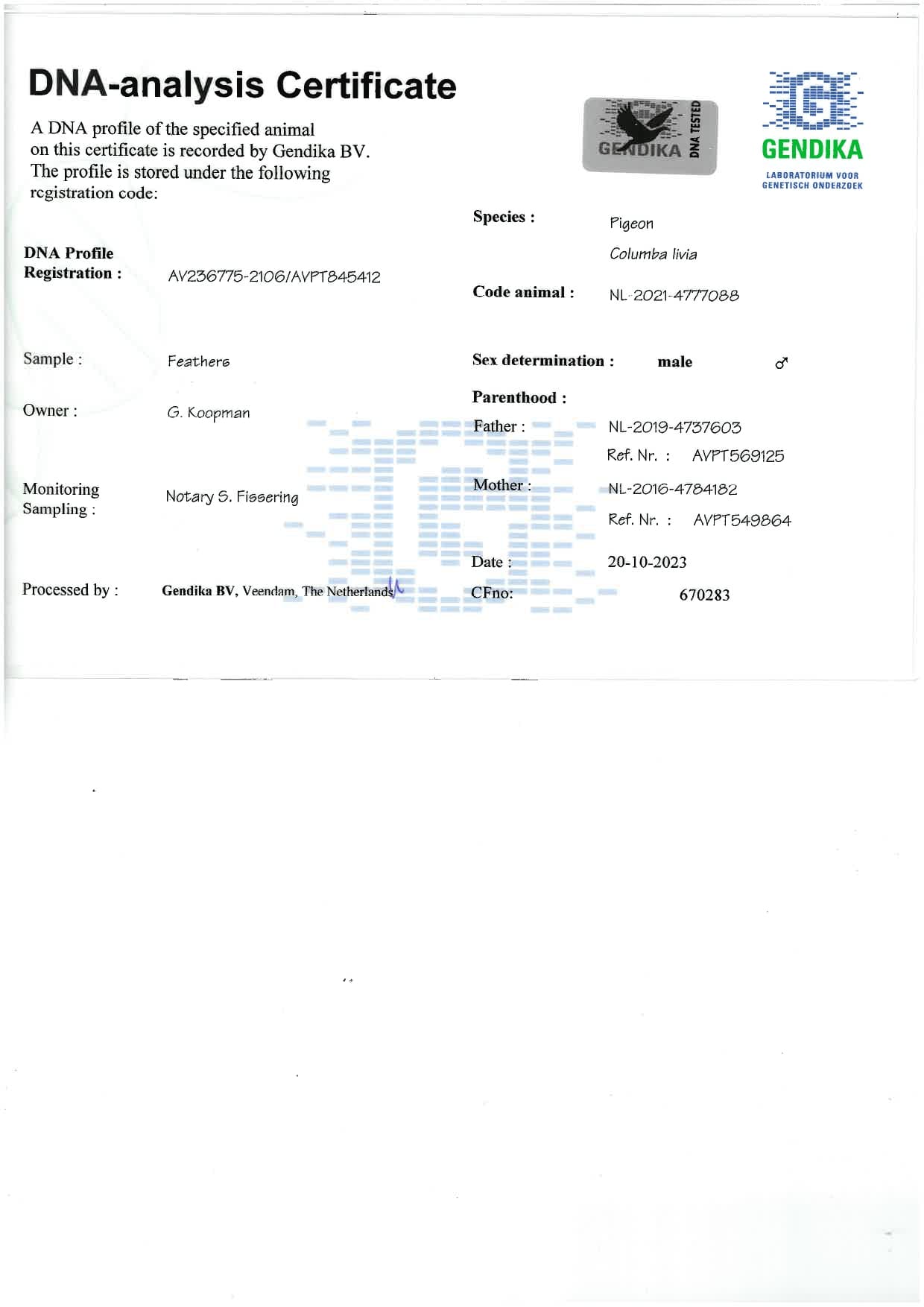 Éleveur : KOOPMAN GERARD 吉拉德·考夫曼