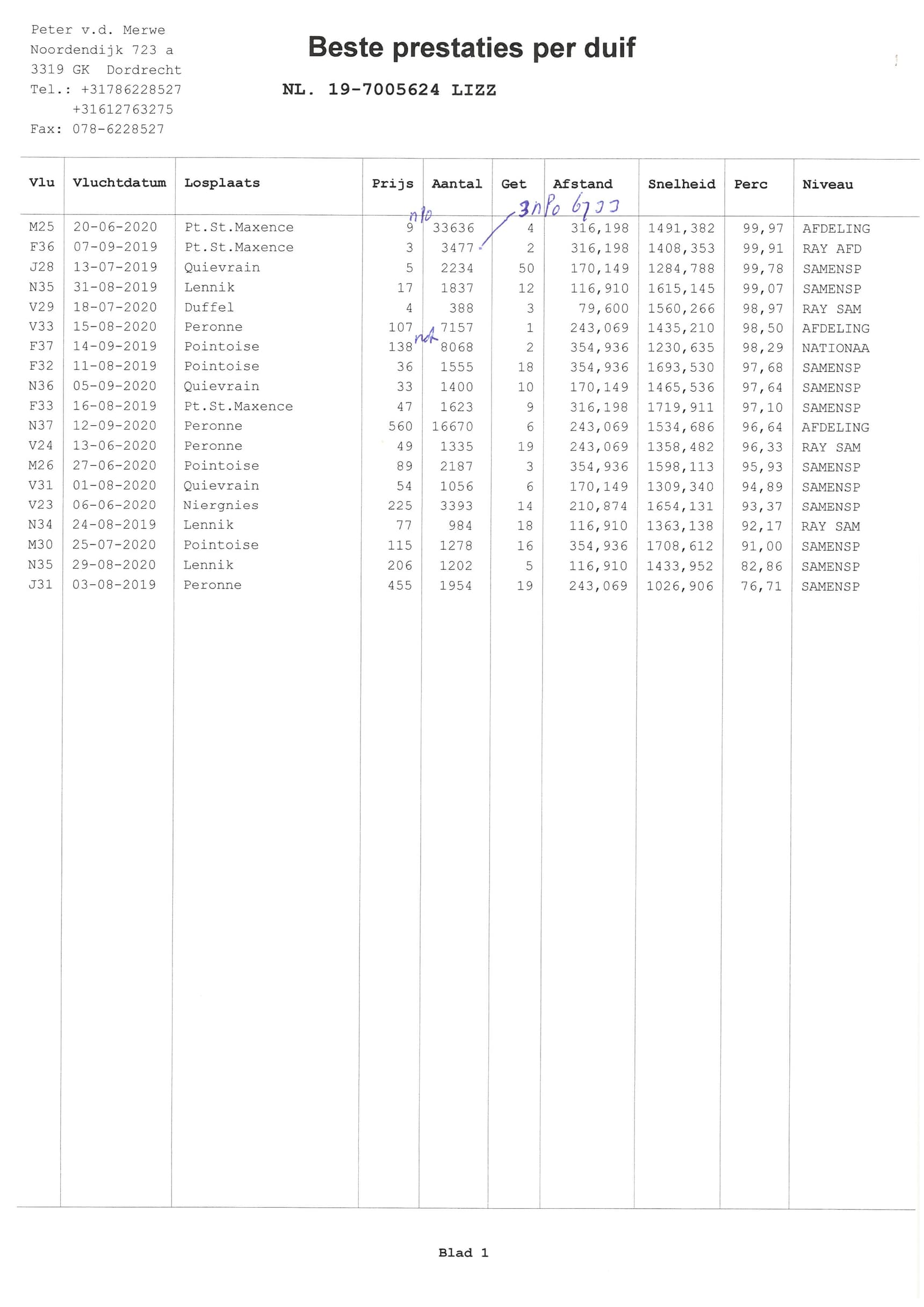 Éleveur : VAN DE MERWE PETER 彼得·米卫