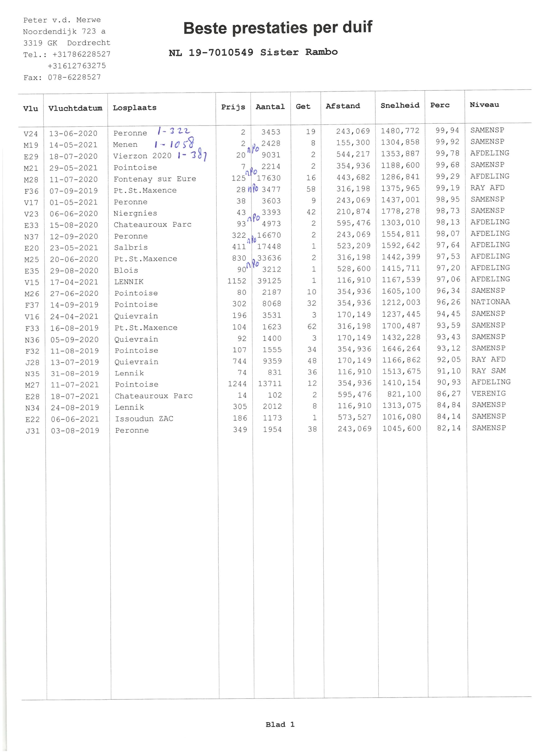“Rambo” won (no doubles): 9 prizes as a youngbirds