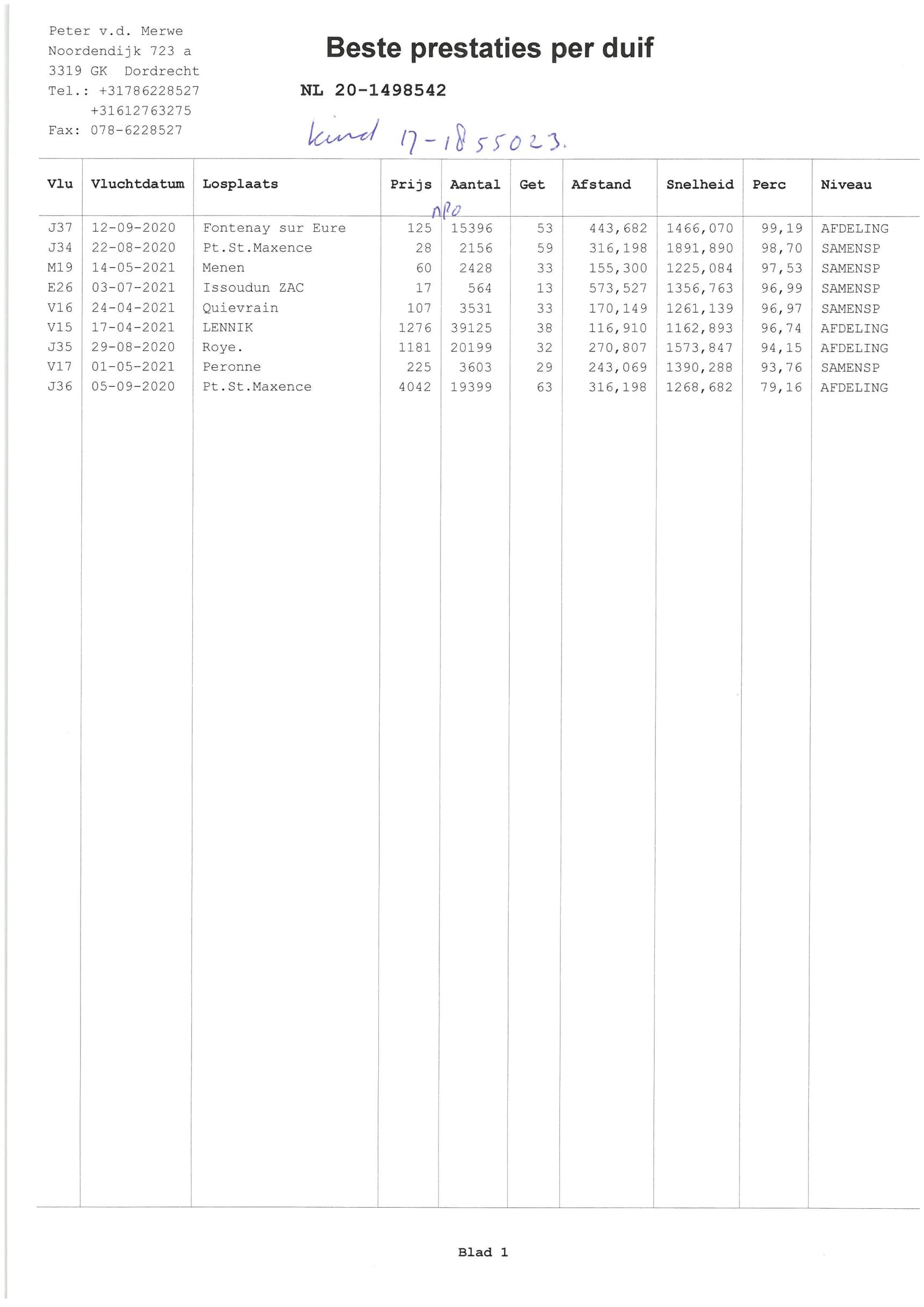 1,332b. – 1st Quievrain 2,069b. (fastest 6,734b.) – 1st Peronne