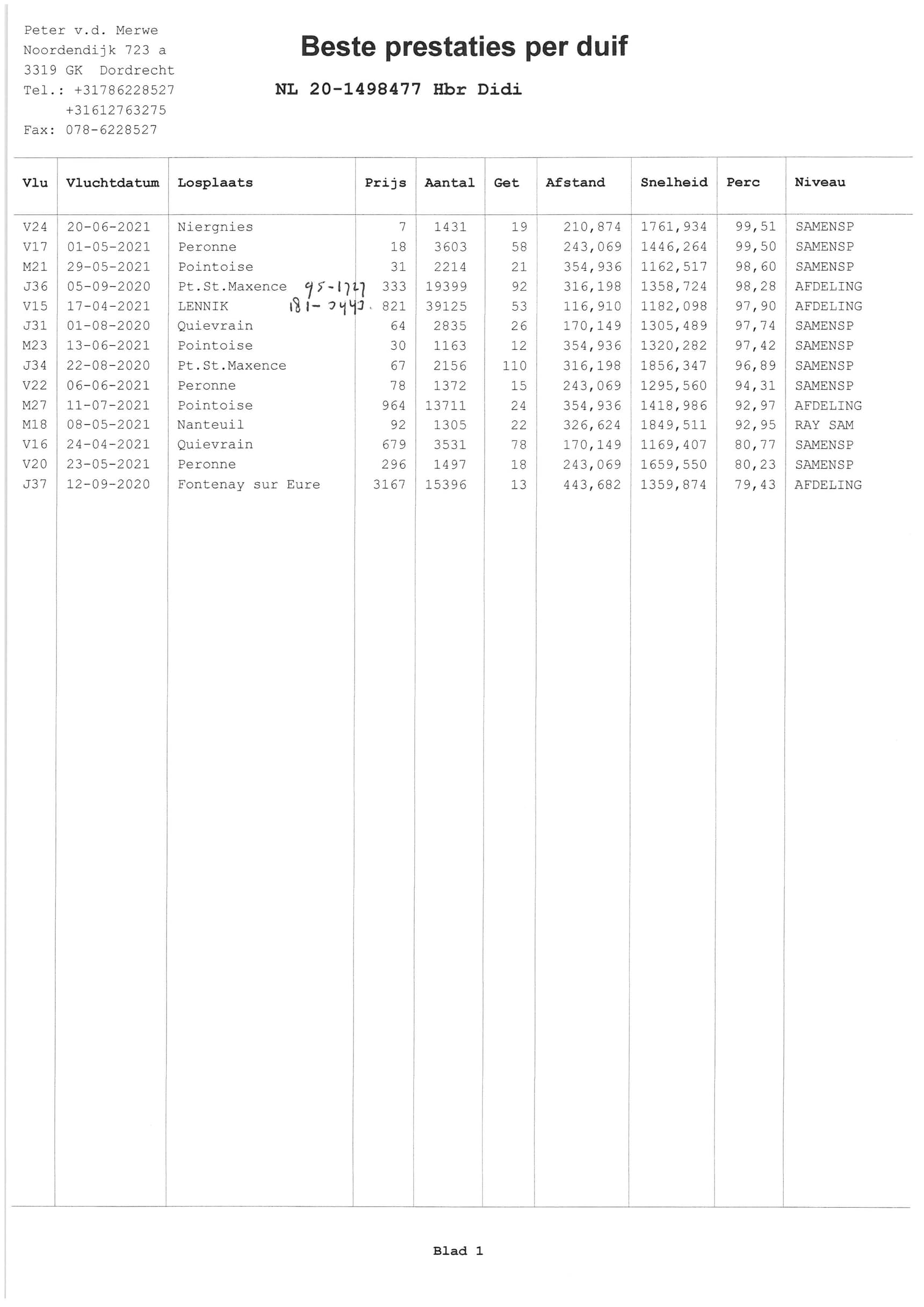 Father: “B16-2010751” – 100% Gaston Van de Wouwer
