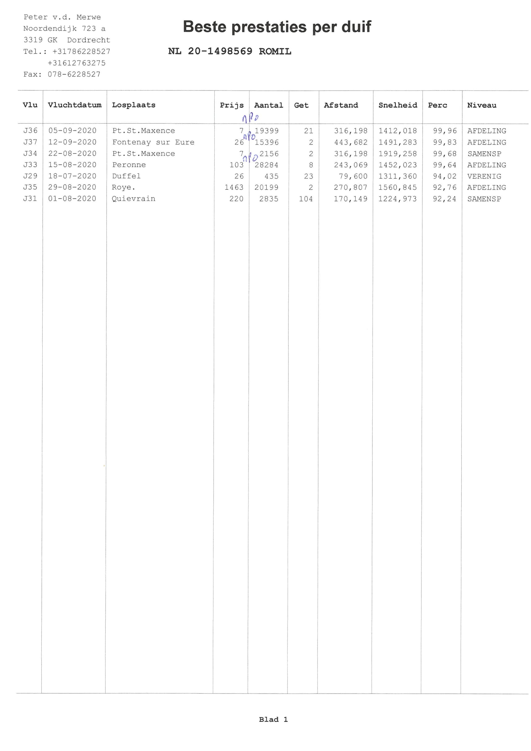 Won: 1st NPO Ruffec 4,133b. – 8th Prov.