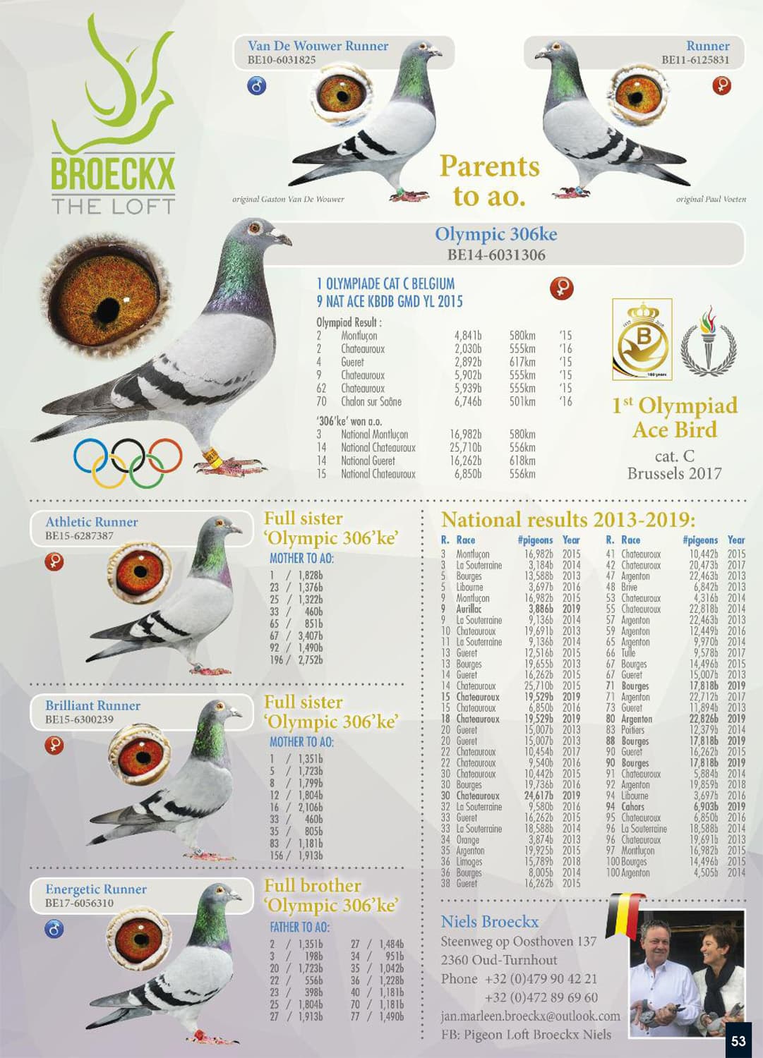 Father : BE16-6272409 ‘Son Olympic 306’ke’‘Olympic 306’ke’ won: 1 Olympiad Bird Cat. C Brussels 2017