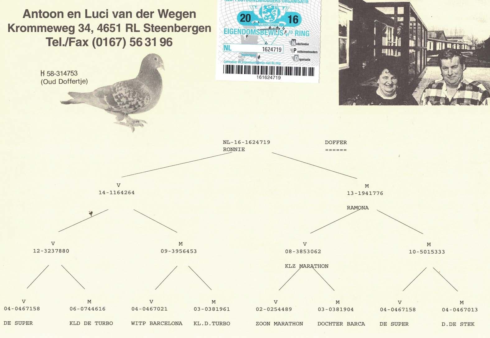 Éleveur :100% VAN DER WEGEN A. & L. 100% 纯范德维根血系