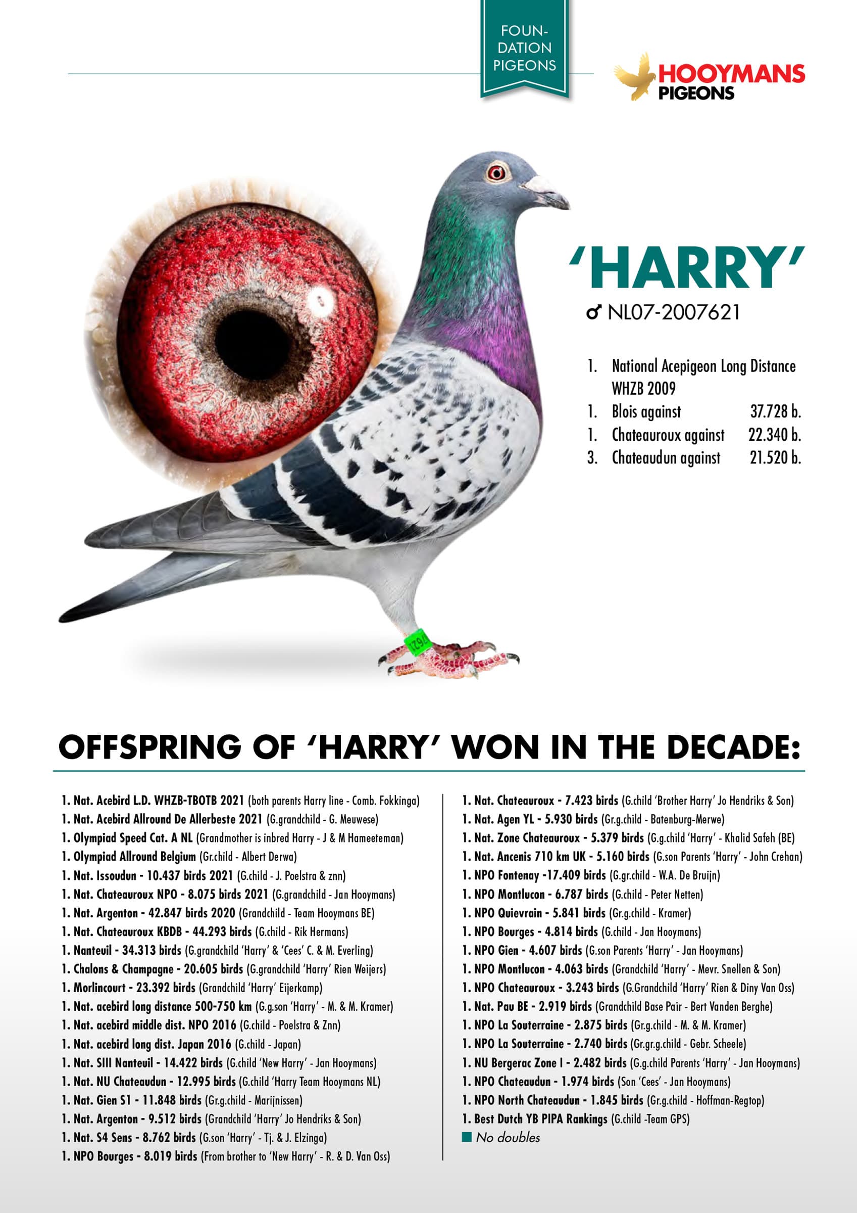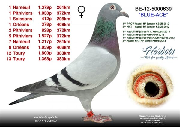Father: BLAUWE WITKOP I, grandson BLUE ACE: 1 Prov. Ace pigeon KBDB
