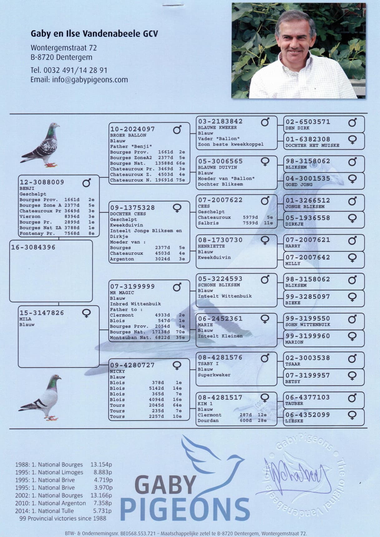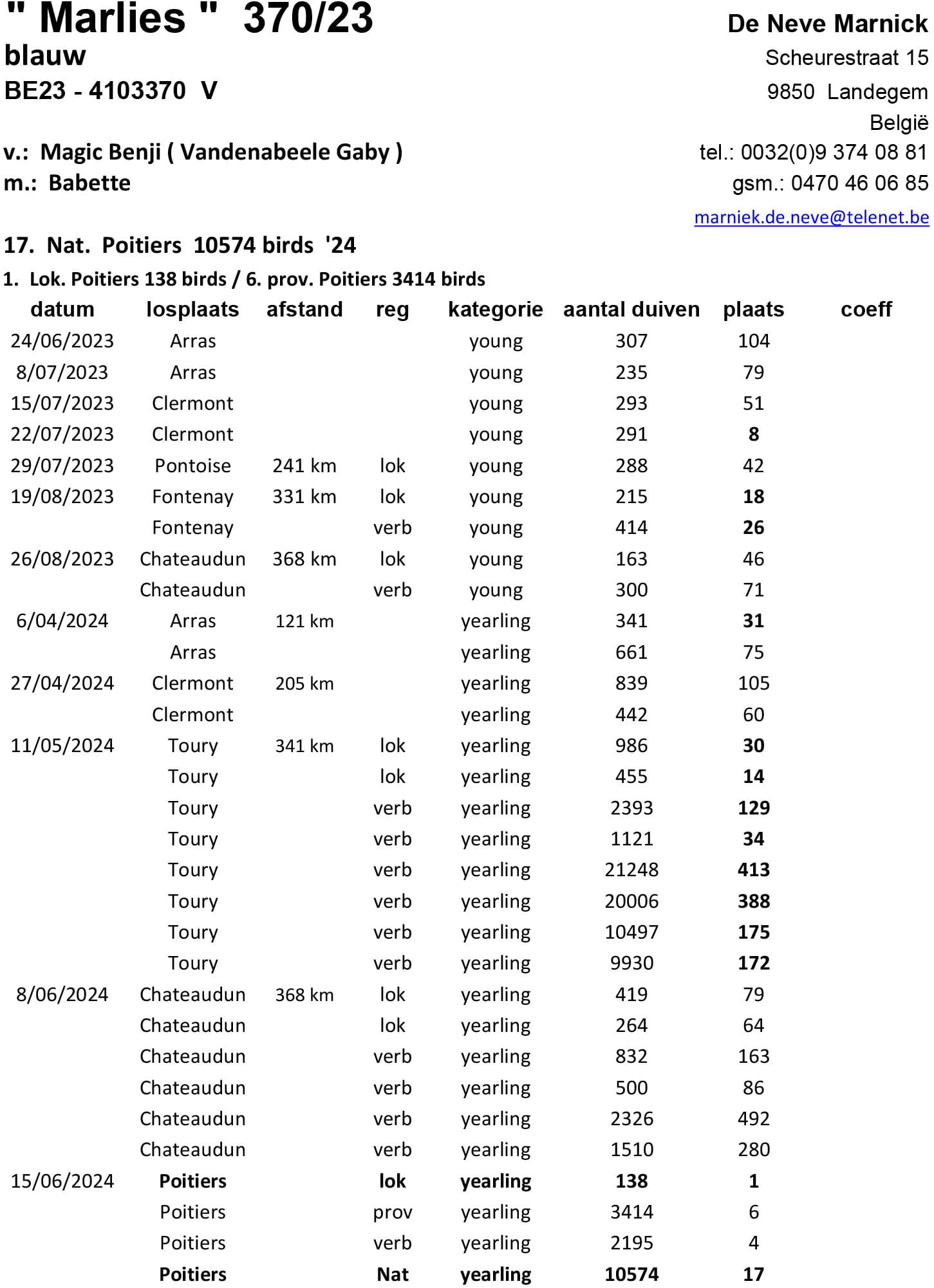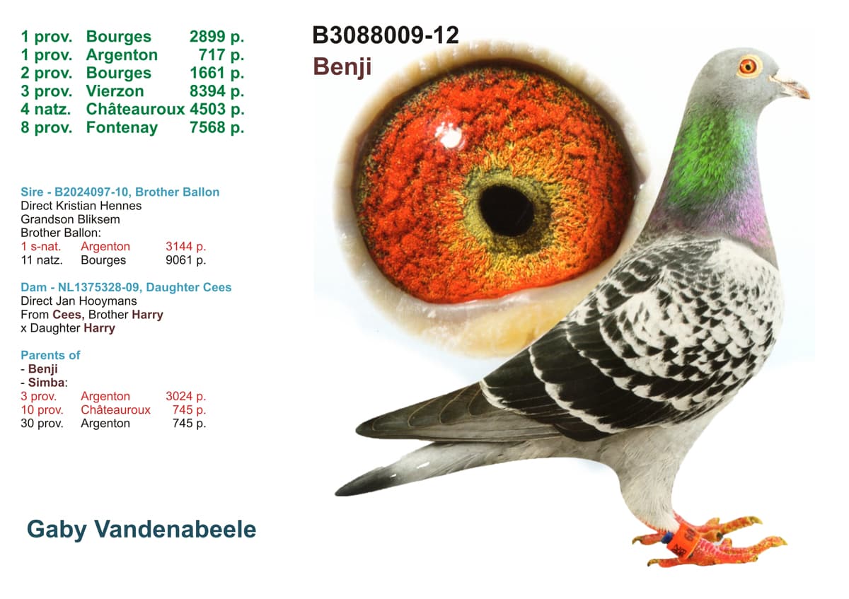 Bred from ‘ Benji ’, 1. Nat. zone Bourges – 3,788 birds