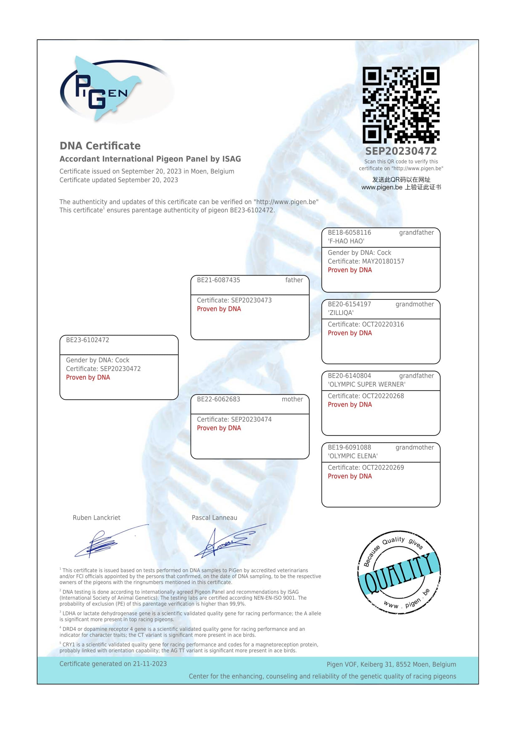 Éleveur :VAN OECKEL BART & NANCE 巴特&南希·范欧克