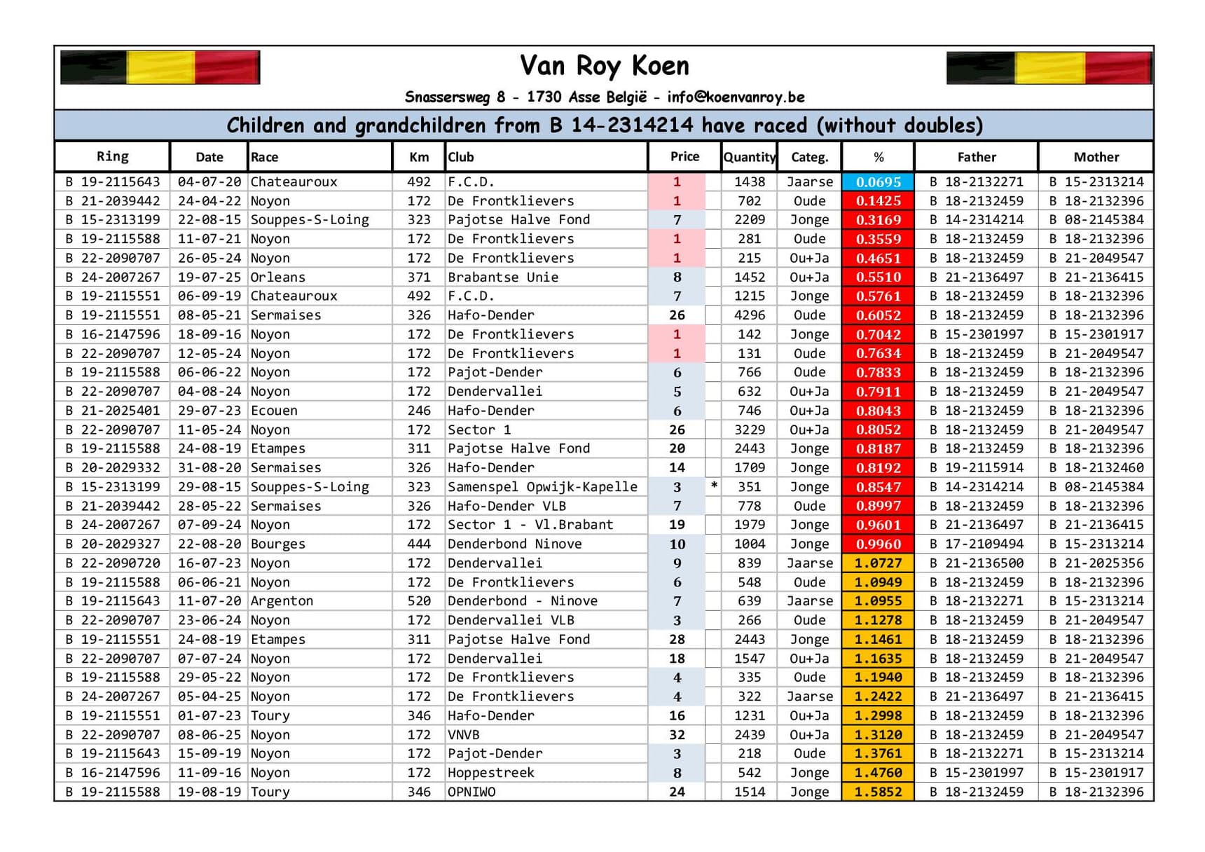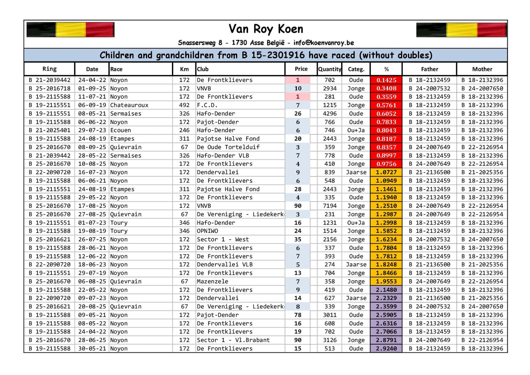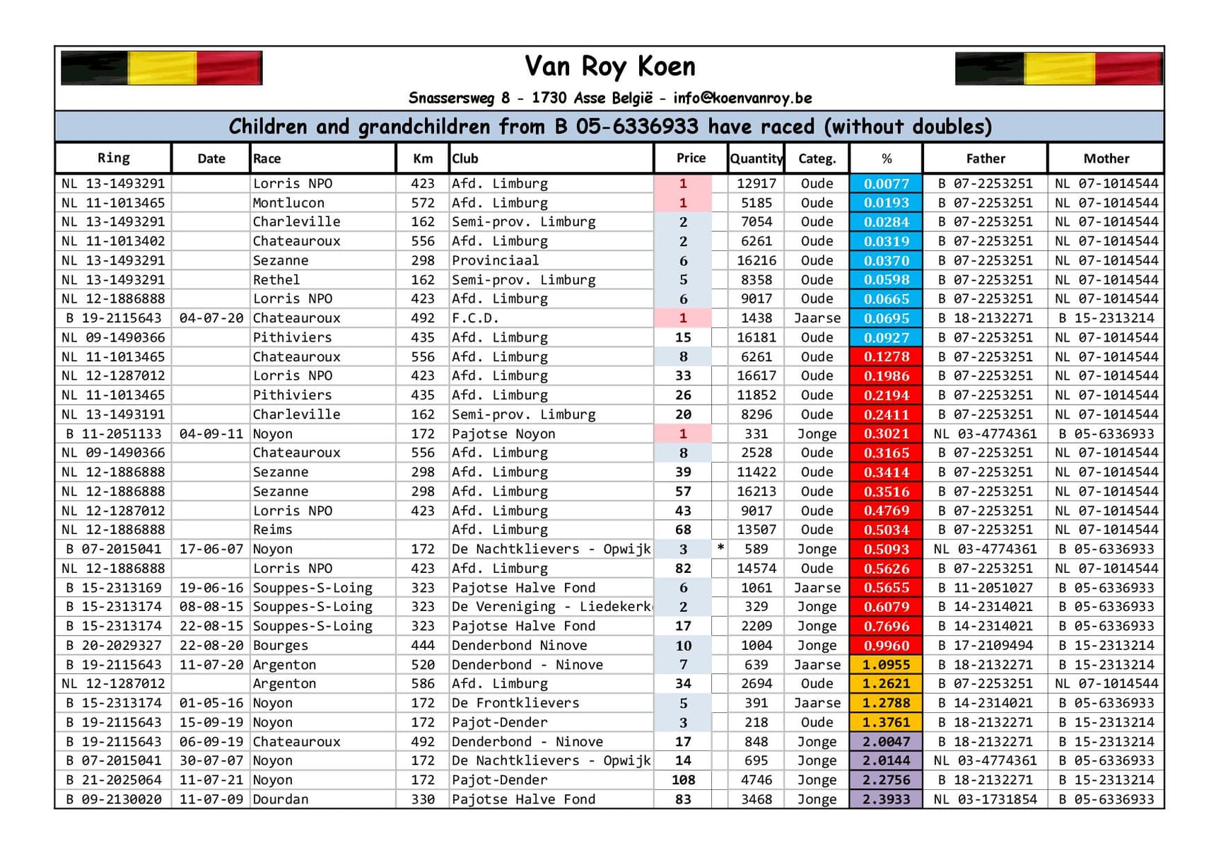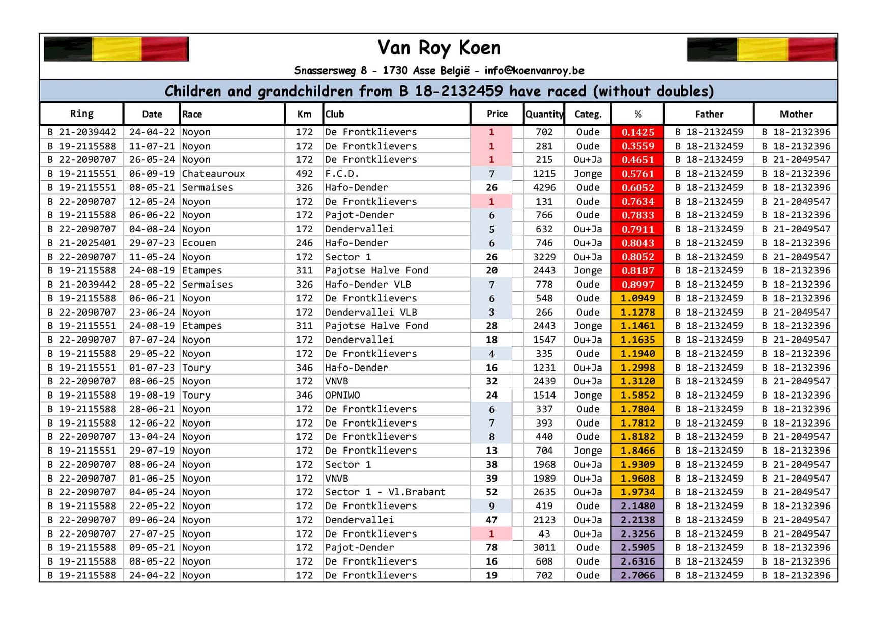 Éleveur :VAN ROY KOEN 范路易·坤