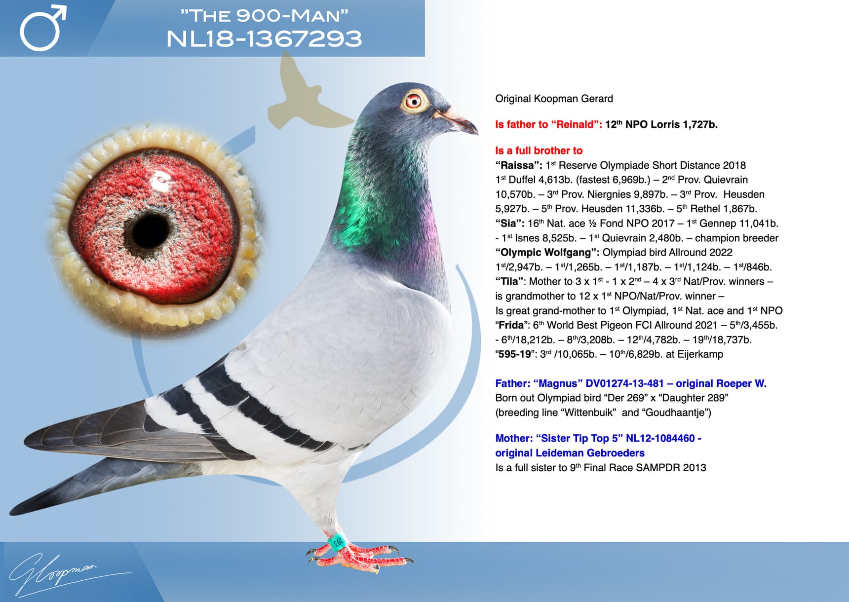 Born out Olympiad bird “Der 269” x “Daughter 289” (breeding line “Wittenbuik” and “Goudhaantje”)
