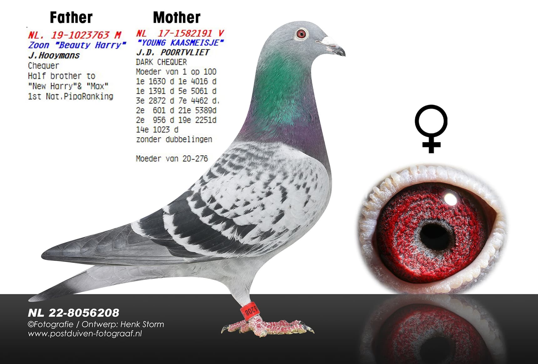 Out of son Beauty Harry x "YOUNG KAASMEISJE" good breeding hen, is mother to 3 x 1st rayon (see pedigree)