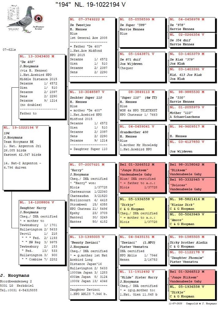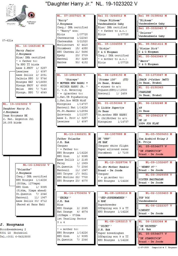 The 2nd prize national Argenton was won by "NL19-1023202". As already noted, she flew in together with "Brenda" but she first gave owner Gregory another look through which she registered 6 seconds after "Brenda". In spite of everything a banging performance and hopefully she will repeat it again because while "Brenda" already got a breeding box on the breeding loft of Jan Hooymans "202" will be raced even further. "202" was born in the month June 2019 and was basketed on the autumn races in her year of birth. There she won a.o. 10th Soissons 604b. - 15th Momignies 1,149b. - 1st Momignies 730b. - 84th Momignies 1,526b. - 53rd Quievrain 955b. and 23rd Arlon 643b. This season she already shook the next performances out of her wings: 200th Melun 1,181b. - 84th Sermaises 896b. – 1,072 National Bourges 22,502b. and 337th National Chateauroux 33,833b. to win the 2nd national Argenton last weekend.
