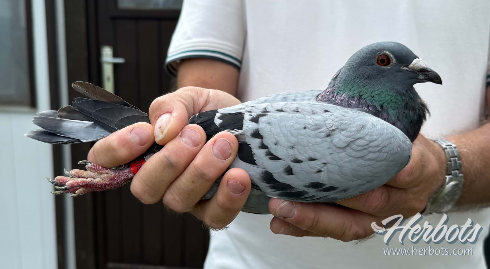 Wilfried avait également des pigeons dans la course de vitesse et la règle dans la salle est qu'il faut entrer dans le sens des aiguilles d'une montre vers midi. C'est pourquoi il était dans la chambre à midi où il attendait toujours lui-même l'homme de la chambre. C'est pourquoi tout s'est passé un peu en retard et son horloge n'a été lue qu'à 12h10. Ensuite, il a dû rentrer chez lui en voiture et il est rentré nerveux. Il connecta son horloge et se dirigea vers le loft. Là, il a compté ses pigeons et il en a compté un de trop, ce devait être un pigeon d'Argenton. Wilfried a immédiatement vu sa femelle et l'a tenue au-dessus de l'antenne à 12h19. Heureusement pour lui, tout s'est bien passé et elle avait suffisamment d'avance sur les vieux pigeons, mais qui sait, ce pigeon était le plus rapide de tout le convoi. On ne le saura jamais, le pigeon s'était certainement un peu rafraîchi lorsque Wilfried le tenait au-dessus de l'antenne.