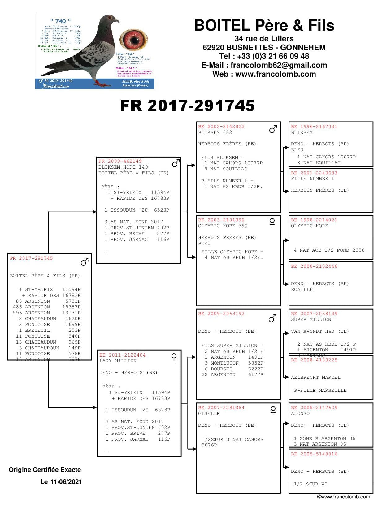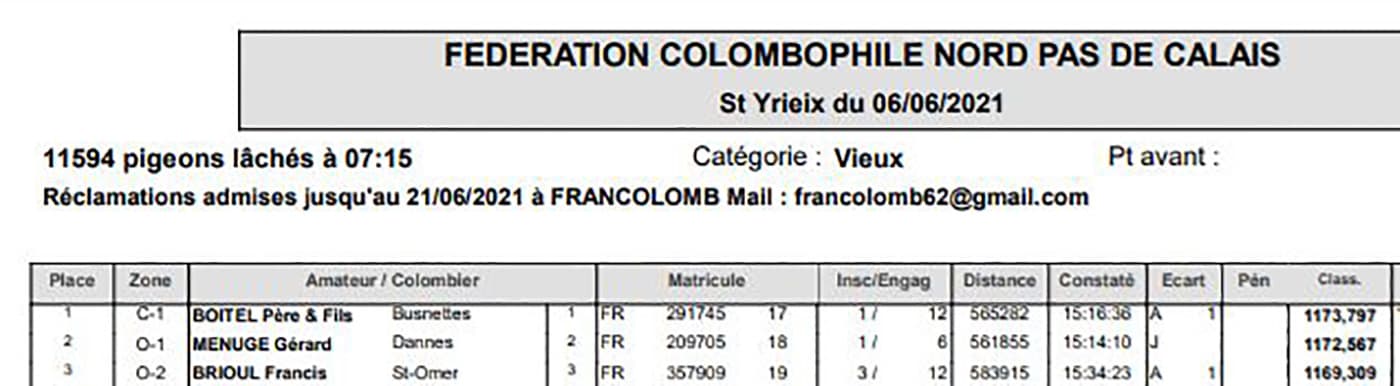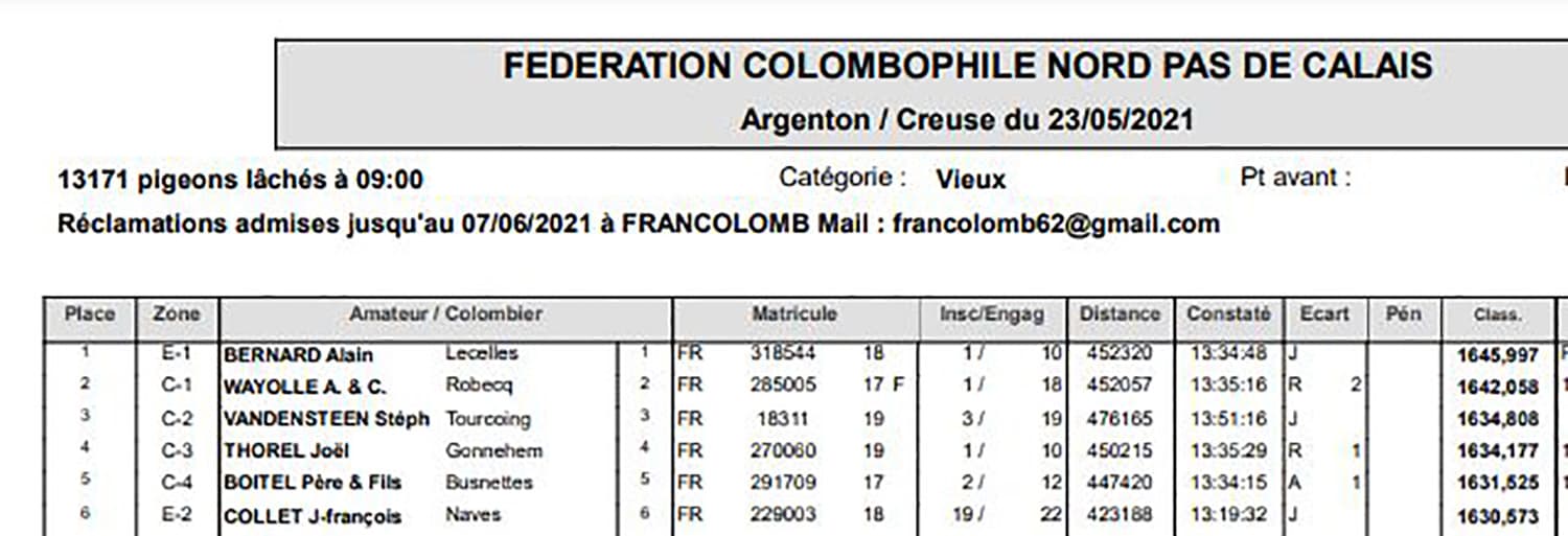 - FR 2017-291709 : 5 Argenton 13.171 pigeons 2021