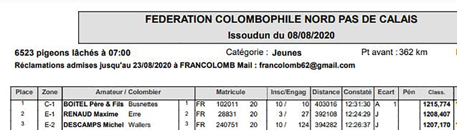 - FR 2020-102011 : 1 Issoudun 6.523 pigeons 2020