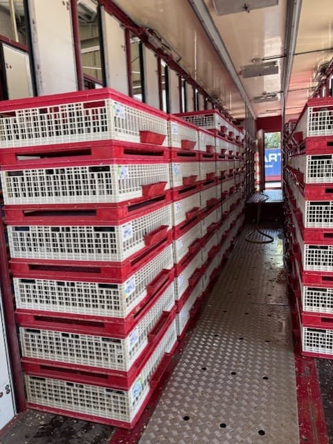 Gezien de extreme hitte werden er door de BV/EB, in samenspraak en na goedkeuring van de KBDB, extra voorzorgsmaatregelen genomen : de manden werden maximum 7 hoog gestapeld en 4 slagen minder per vrachtwagen. Waardoor de Belgische, Franse, Duitse, Engelse en Luxemburgse duiven over 5 vrachtwagens verdeeld staan ipv 4. (De Nederlandse duiven gaan met eigen vervoer). De duiven werden bij aankomst op de verzamelplaats dadelijk voorzien van vers water en de lichten op de wagens zijn nog 1 uur blijven branden, zodat alle duiven voldoende mogelijkheid hadden tot drinken. Er is deze ochtend vroeger gestart met het plaatsen van de tussenblokken (extra ventilatie) tussen de manden en de duiven zijn na het plaatsen dadelijk terug voorzien van vers water. Tijdens het transport wordt ook extra aandacht besteed aan het drenken van de duiven. En op de lossingsplaats heeft het gemeentebestuur van Vilanova-del-Vallès, op verzoek van de Catalaanse duivenbond een aansluiting met stadswater voorzien om de watertanks opnieuw te vullen en de wagens eventueel extra te koelen. Bij deze ook onze oprechte dank aan de vrijwilligers die hier aan meegewerkt hebben. Het team van de BV/EB probeert (zoals altijd) om onze gevleugelde vrienden in optimale omstandigheden aan de start te krijgen van de koninginnenvlucht van de marathon. Iedereen bedankt voor deelname en veel succes. Hieronder een aantal foto’s.