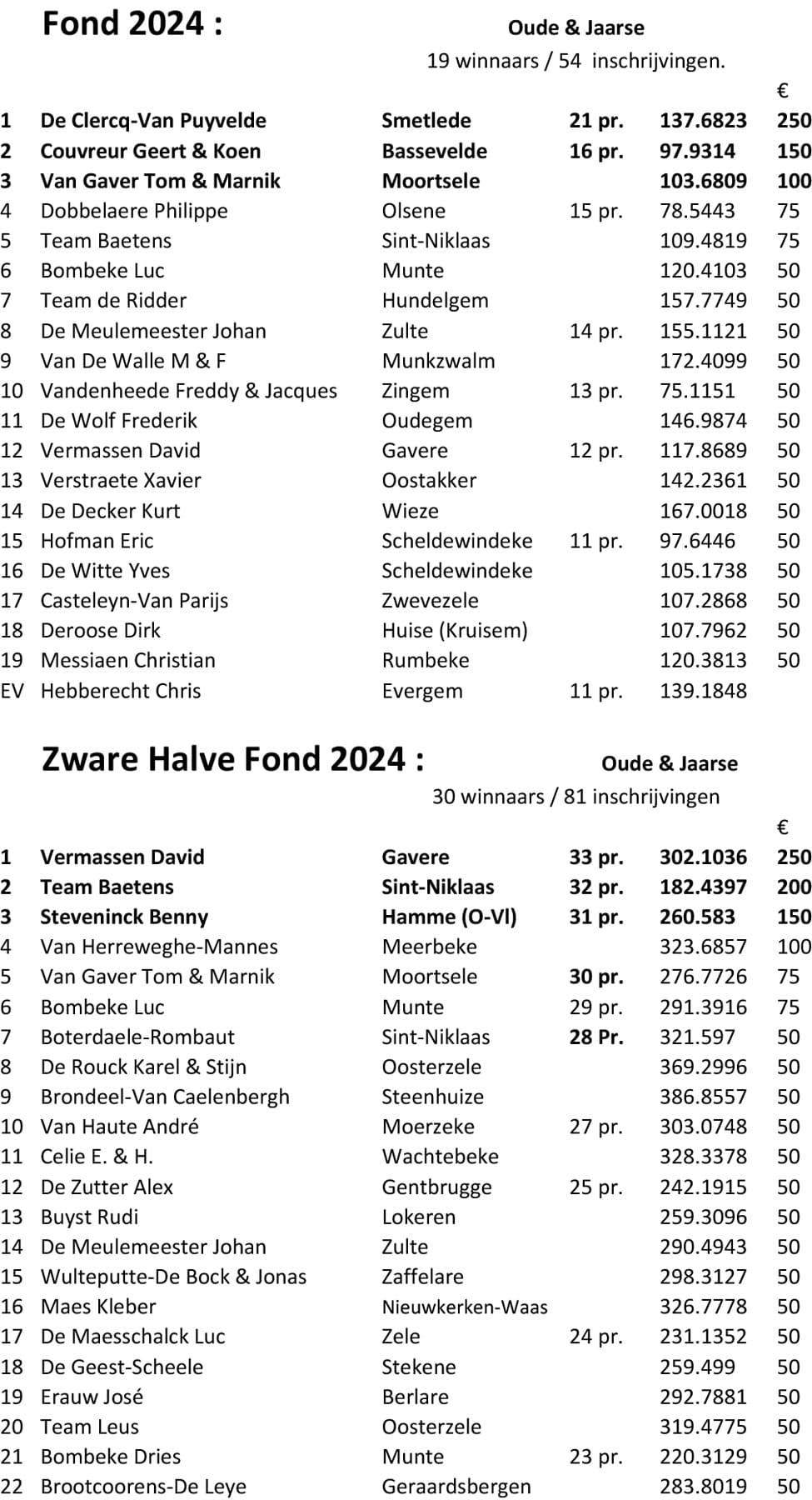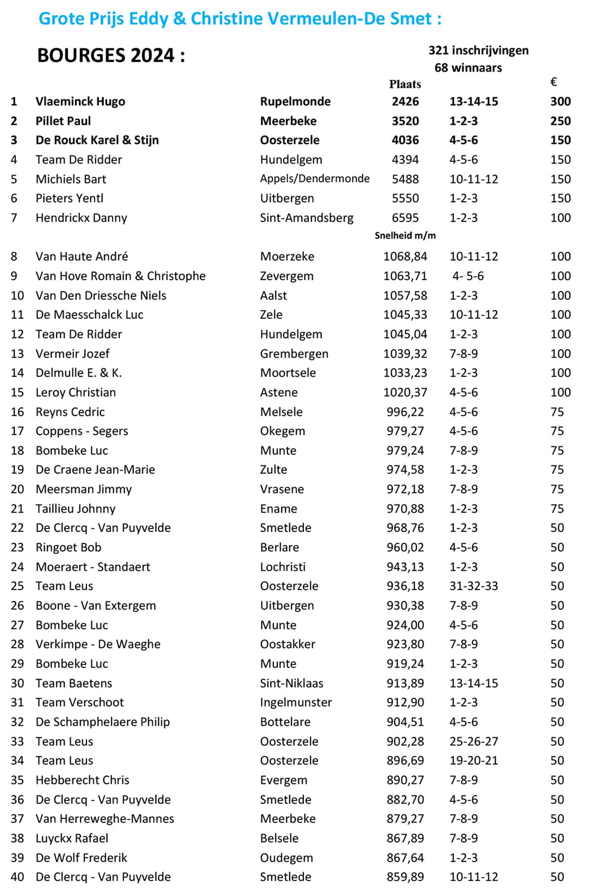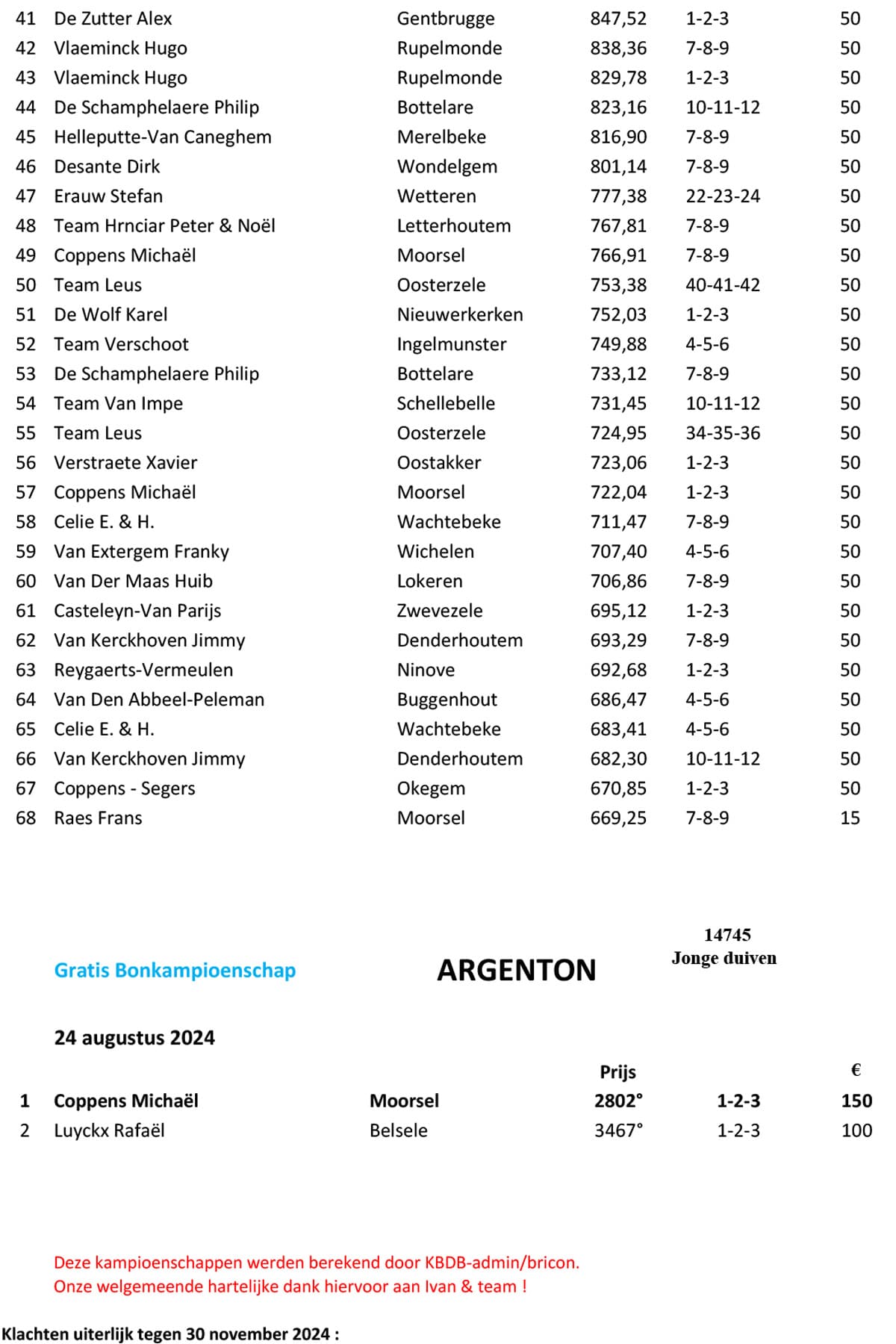 ajd beide vlaanderen : voorlopige uitslagen kampioenschappen, bonvluchten edm.