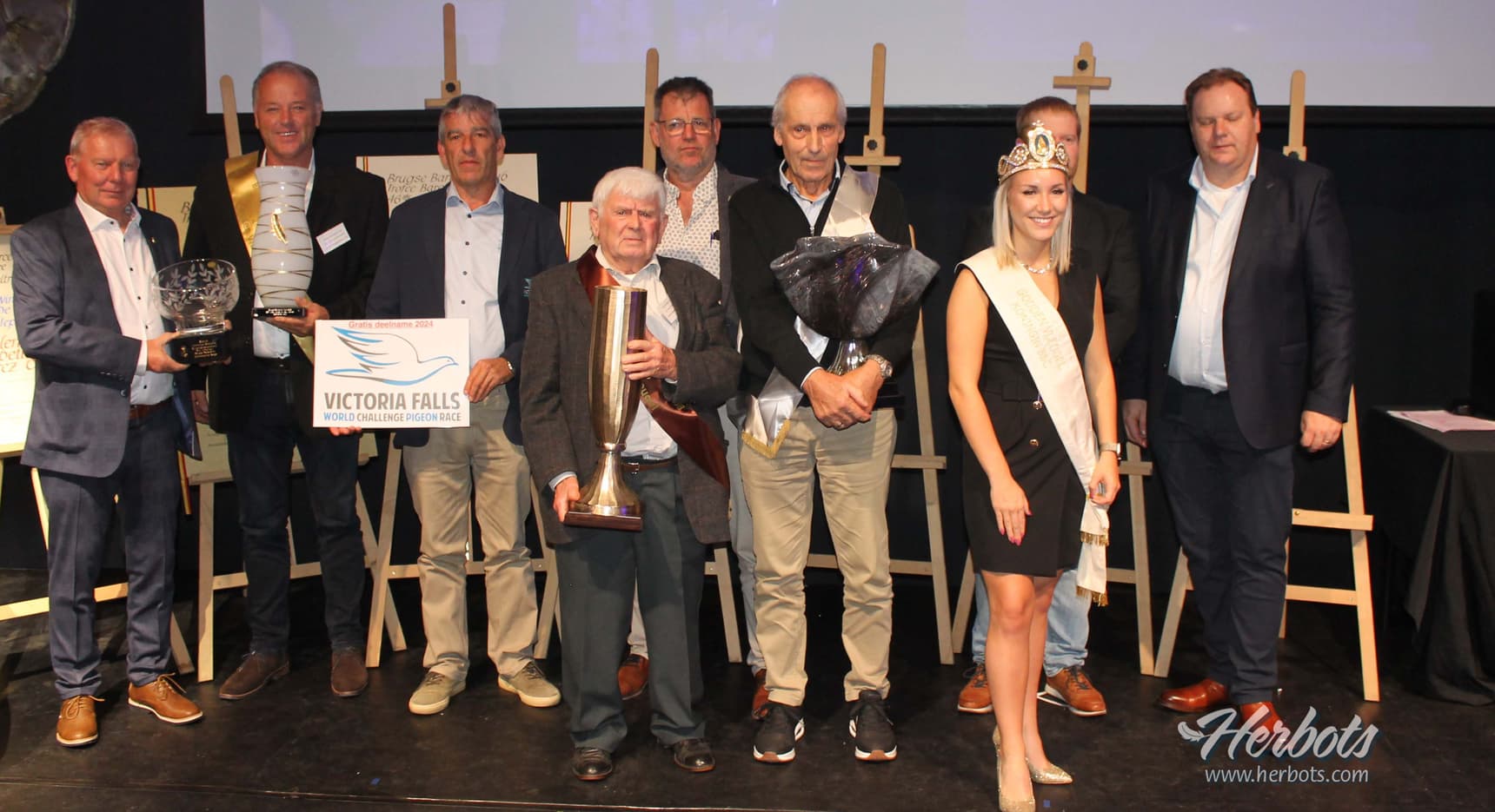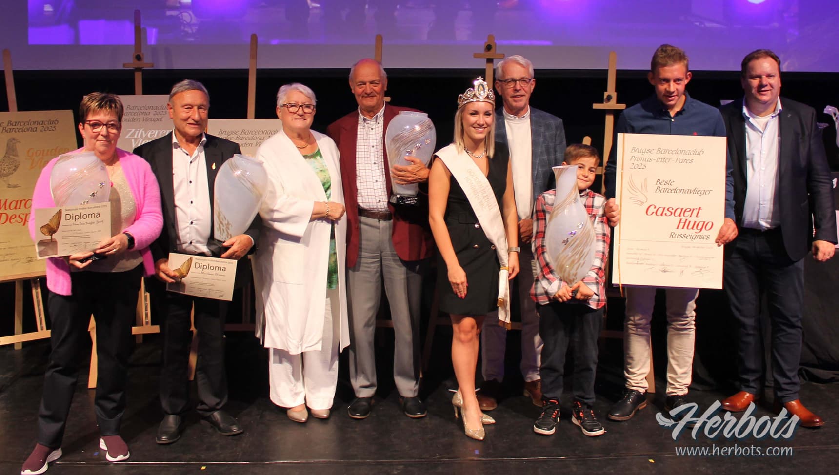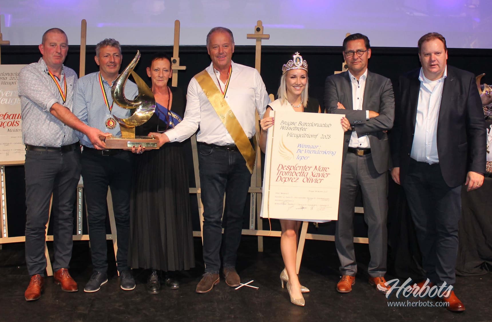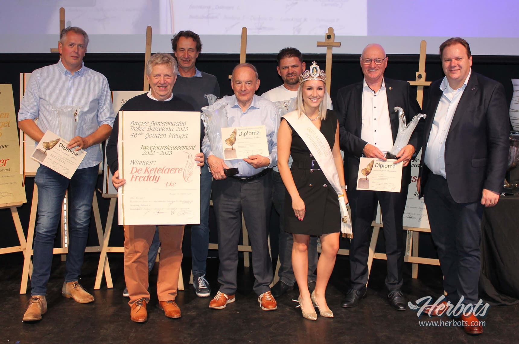 Het is een prachtige club, een sterke organisatie, en al wie zich op één of andere wijze verbonden voelt met de vlucht uit Barcelona of zware fond is graag aanwezig op het jaarlijks feest van de Brugse Barcelonaclub. Het was reeds de 46e editie waaruit blijkt dat goede tradities die in ere worden gehouden ook blijven bestaan. De club telt 850 leden ! Op het avondfeest waren er een 300 aanwezigen in de prachtige locatie van de Vossenberg in Hooglede. Het avondfeest is voor de winnaars de respectievelijke Gouden-Zilveren en Bronzen Vleugel de apotheose van een luisterrijke dag. Deze Vleugelwinnaars worden reeds van ’s middags in chique limousines naar Brugge gebracht voor een tocht op de Brugse reien, een lekkere hap, de nodige gezelligheid gemarineerd in een lekkere champagne. Niets dan tevreden gezichten bij deze die het mogen meemaken. ’s Avonds, wanneer de andere genodigden-aanwezigen hun eerste commentaren kwijt zijn gespeeld tijdens een gesmaakte receptie volgt een lekker diner in een aangenaam kader. De organisatoren sparen kosten noch moeite om al wie zich vooraan in de klassementen heeft gespeeld in de bloemen en de trofeeën te zetten. In een vlotte regie tussen de gangen van het diner door wordt iedereen gelauwerd.