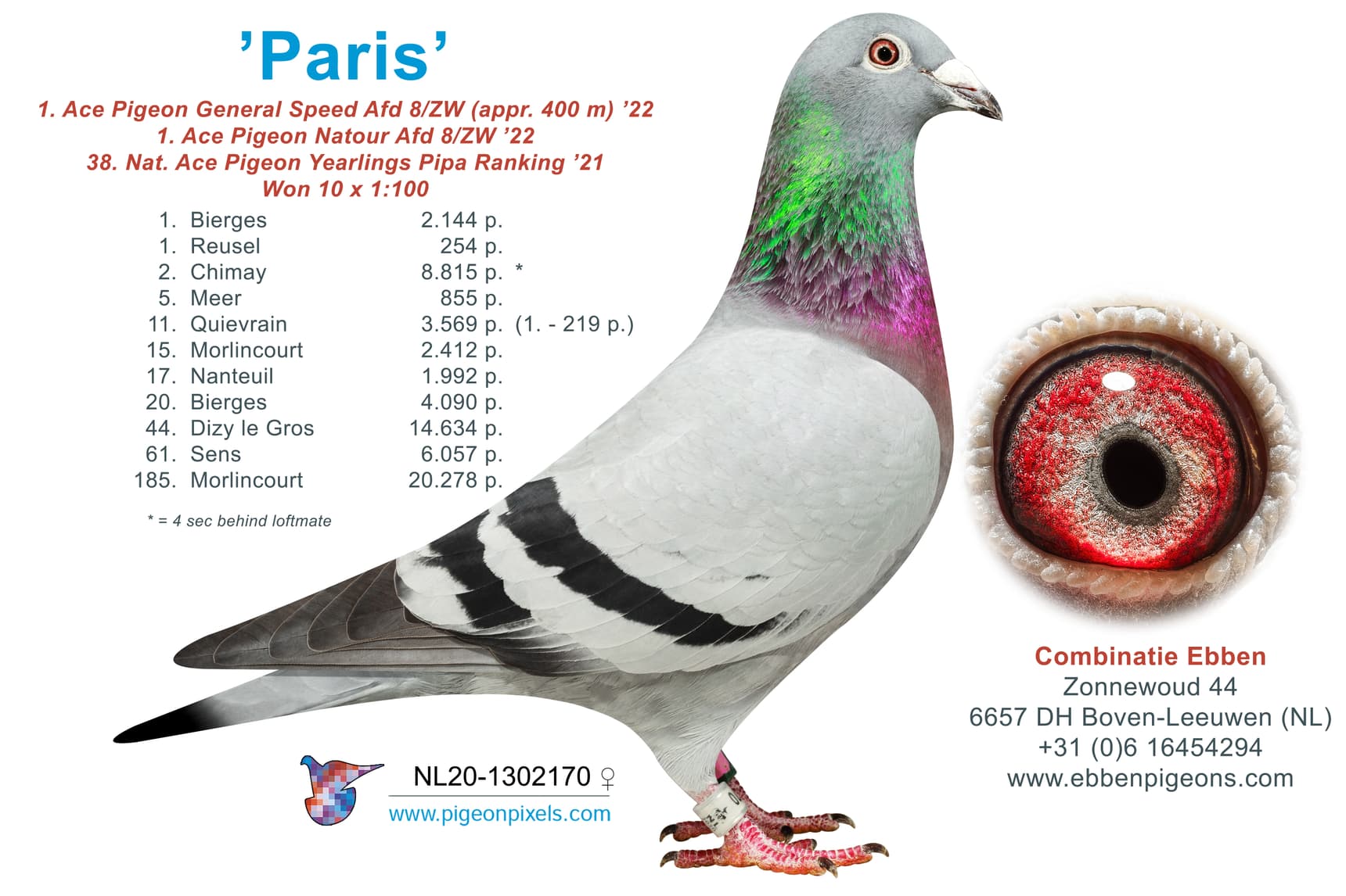 Wat een luxe moet het zijn om over zulke zeldzame toppers te beschikken. “Pizza”NL20-1302163, een super duivin met een uniek palmares (zie foto). Geen wonder dat deze duivin zo sterk presteert want ze is het resultaat van de perfecte mix tussen “Linus” en “Katja”