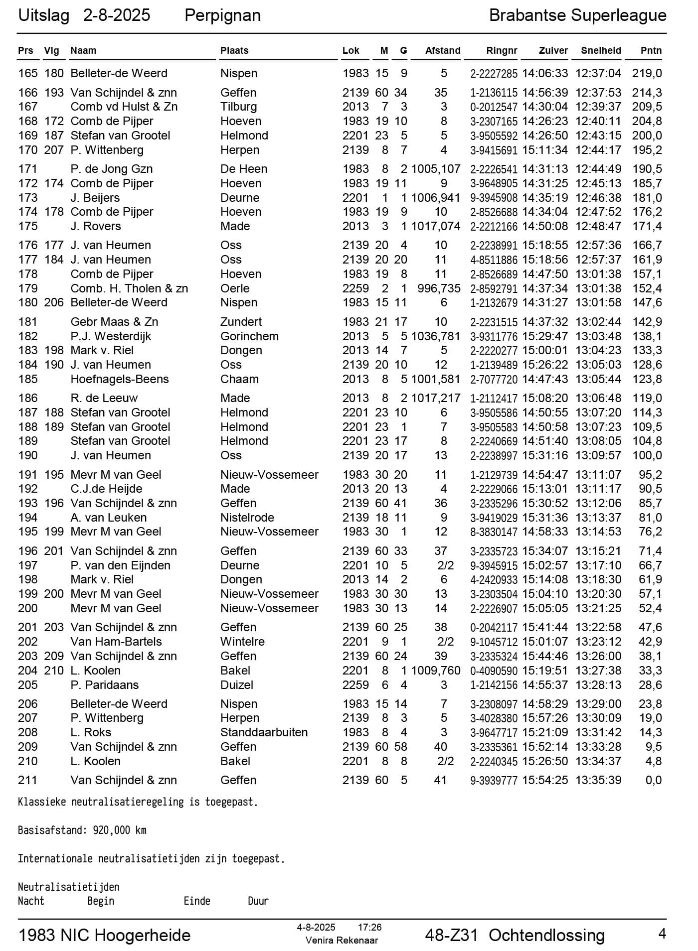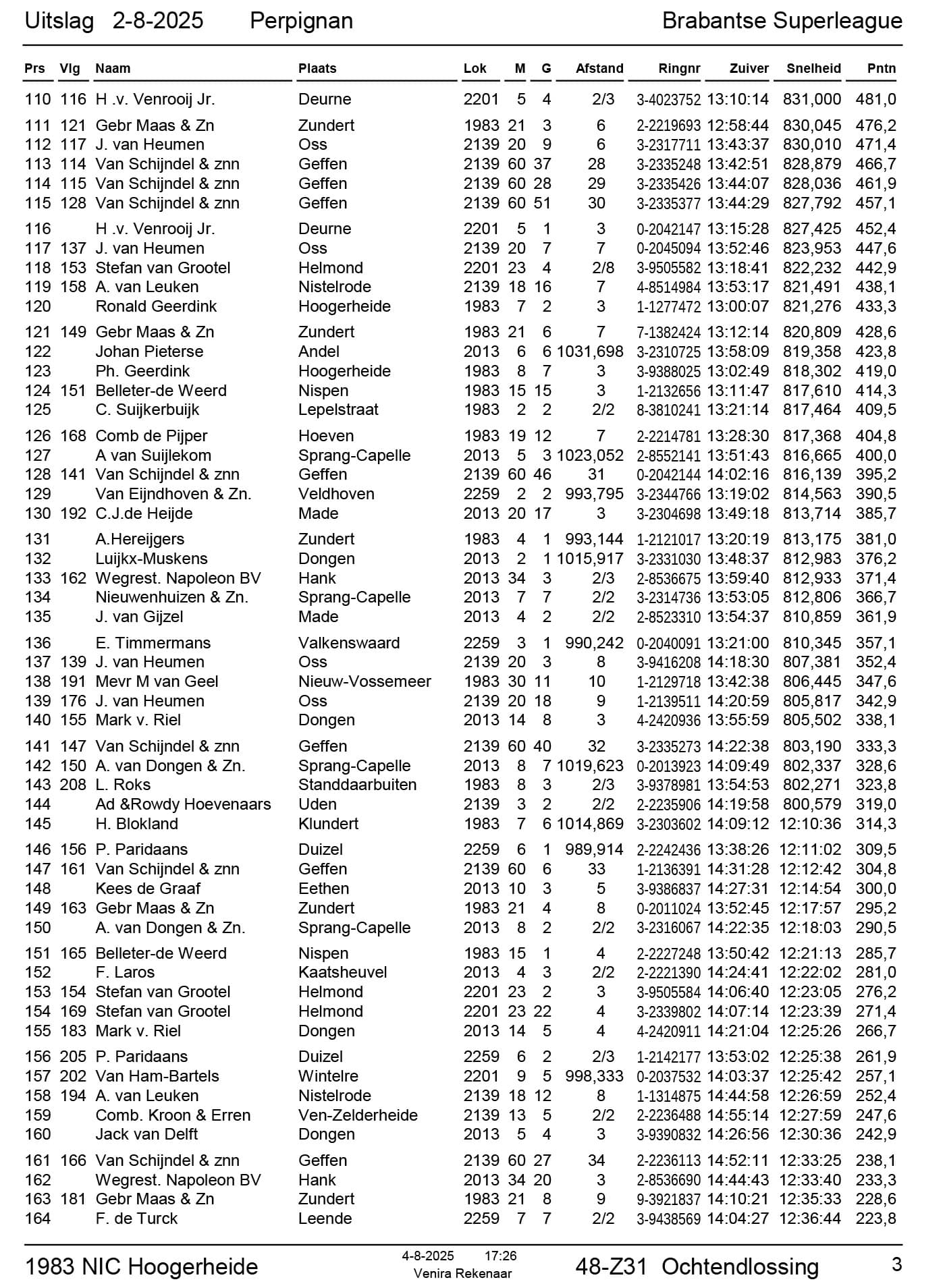 Tweede in de BSL werd A. van Leuken uit Nistelrode, die voor een prachtige uitslag heeft gezorgd en als derde geklasseerd sluit Pierre Wittenberg uit Herpen weer een uiterst succesvol seizoen 2025 af.