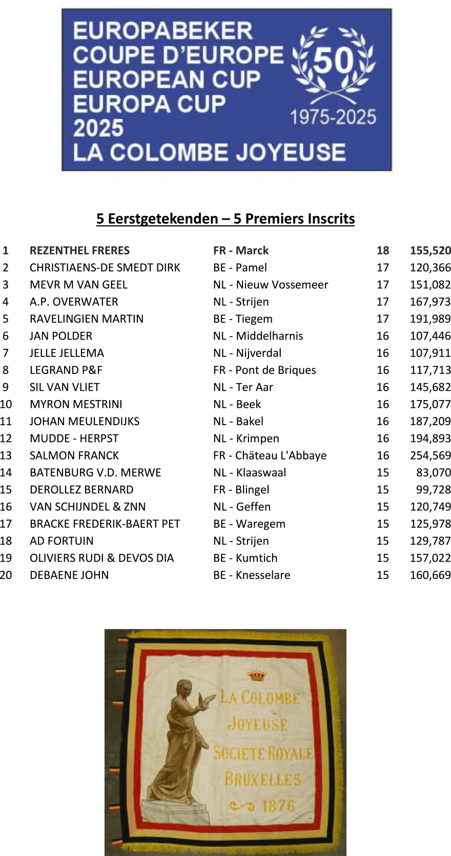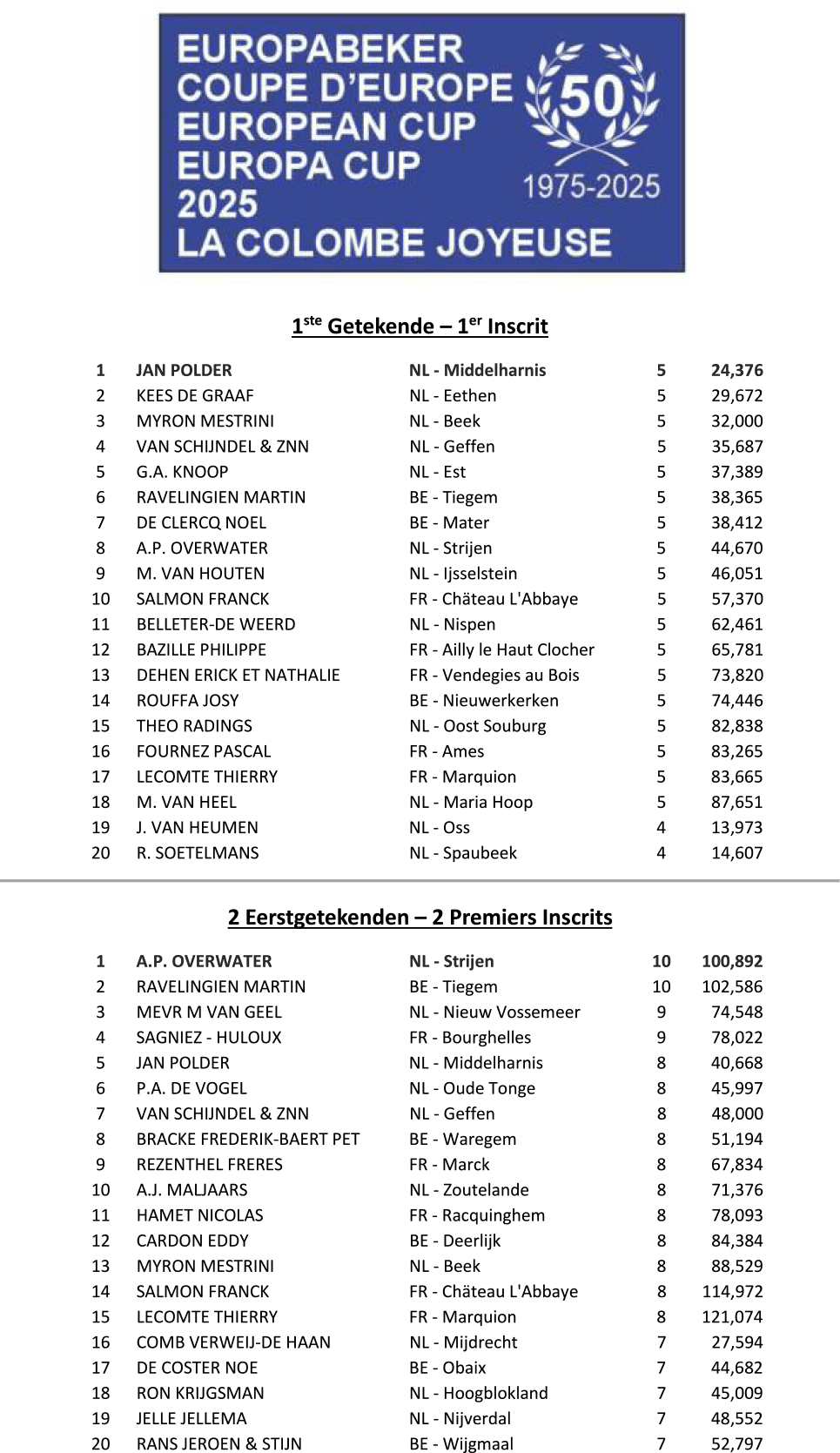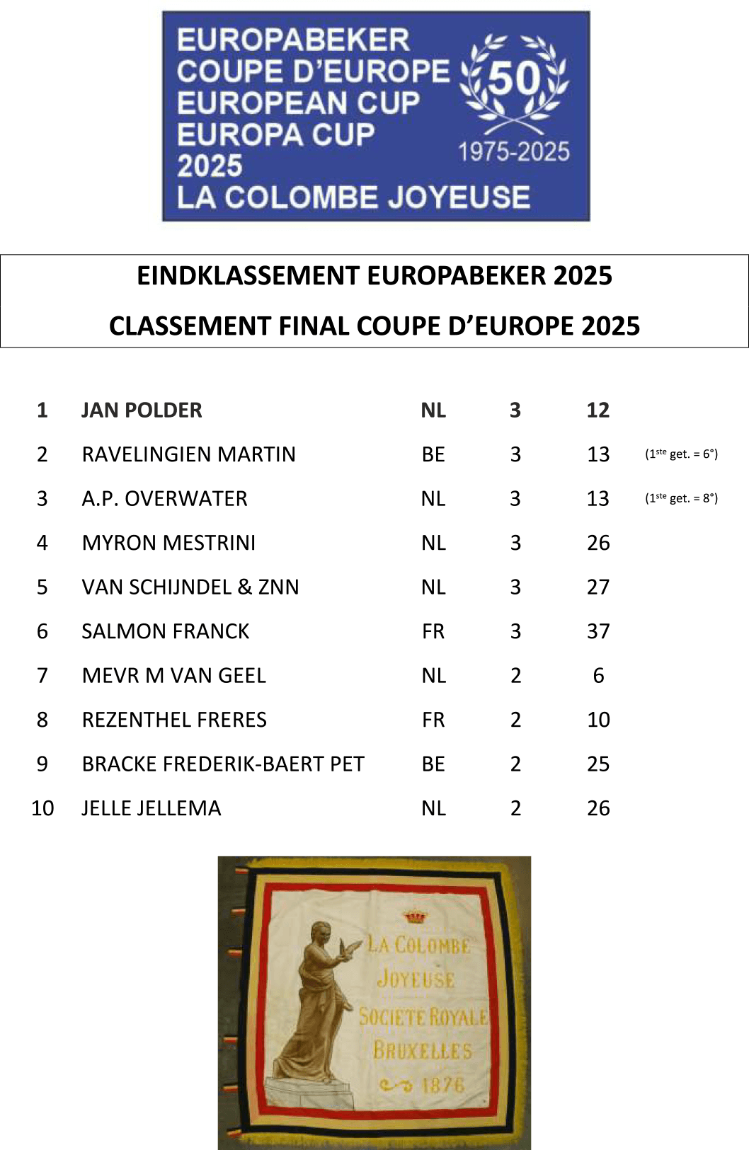 COUPE D'EUROPE - EUROPEAN CUP 16/12/2025 - Nieuw Resultaat - Nouveau Résultat - New Result