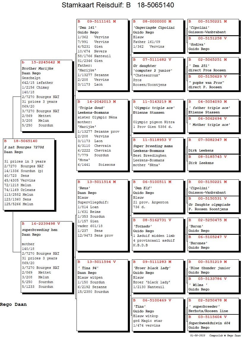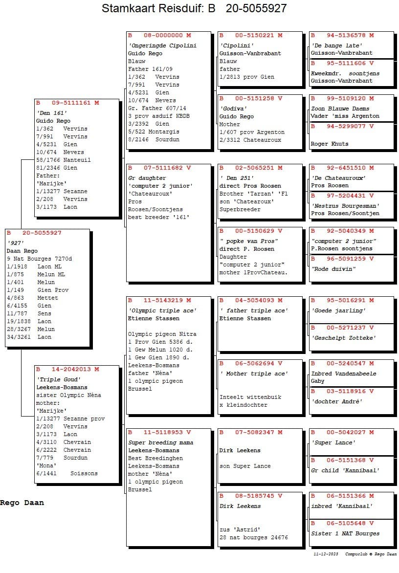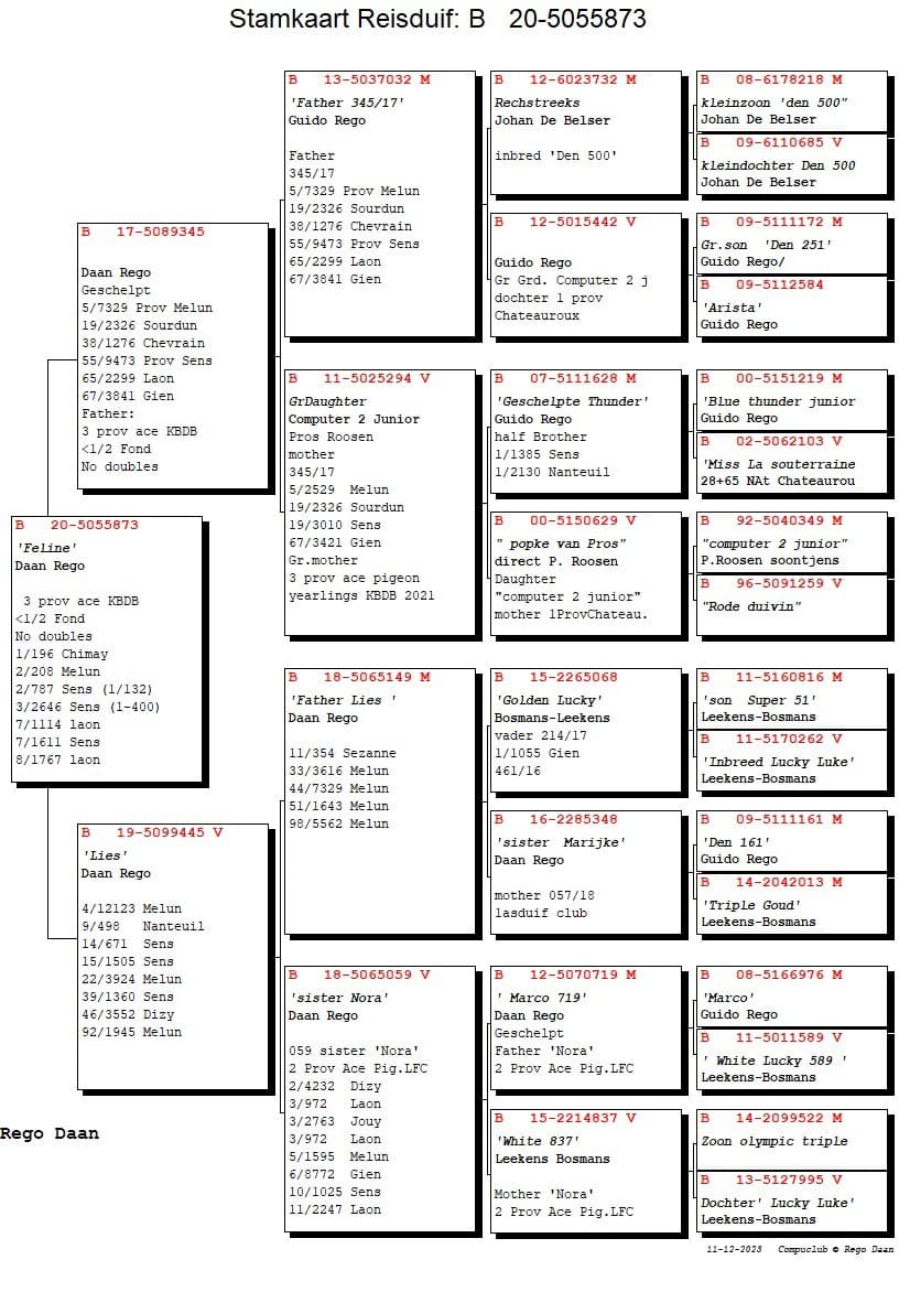 Zoon van “032/13” Guido Rego x “294/11” Kleindochter Computer 2 Pros Roosen