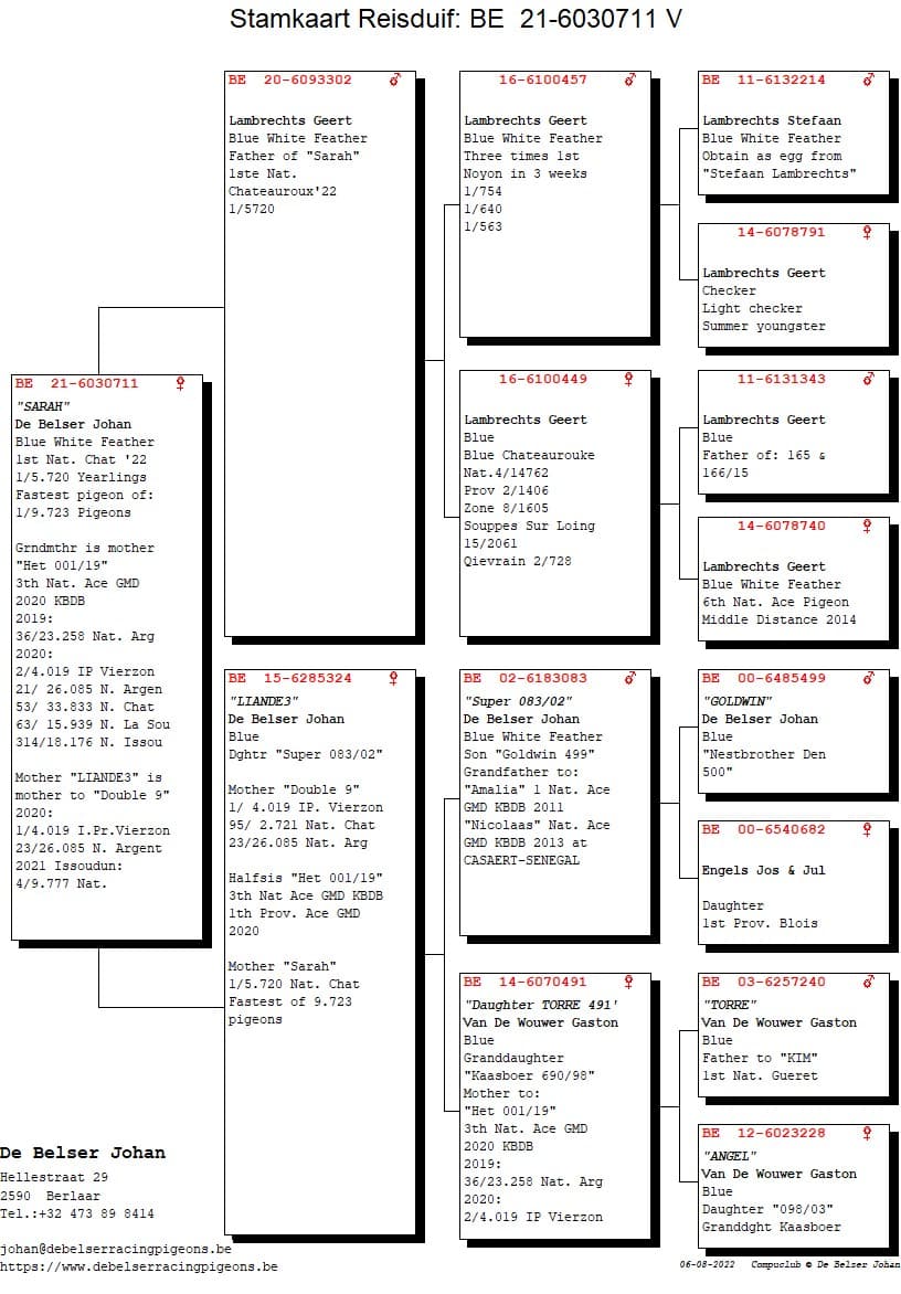 de belser johan - berlaar: 1e nationaal chateauroux 5,720 jaarse - snelste van 9.723d.