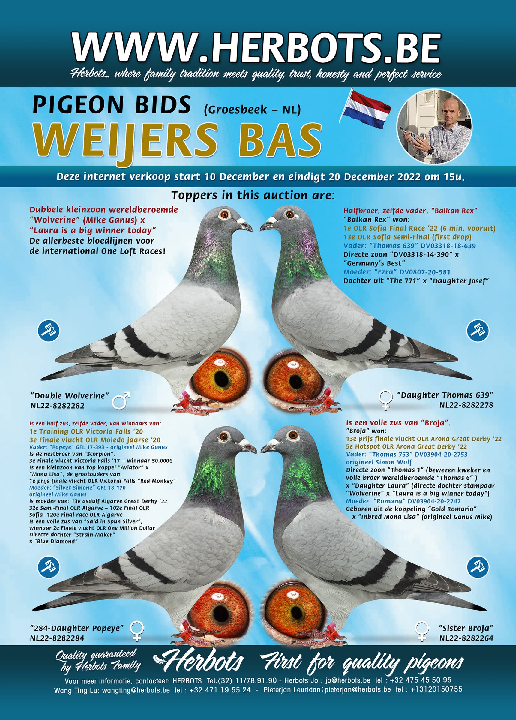 SPECIAAL VOOR INTERNET VERKOOP PIGEON BIDS SELECTEERDE BAS EEN GROEP JONGE OLR DUIVEN UIT AL ZIJN BEROEMDE KWEEKLIJNEN