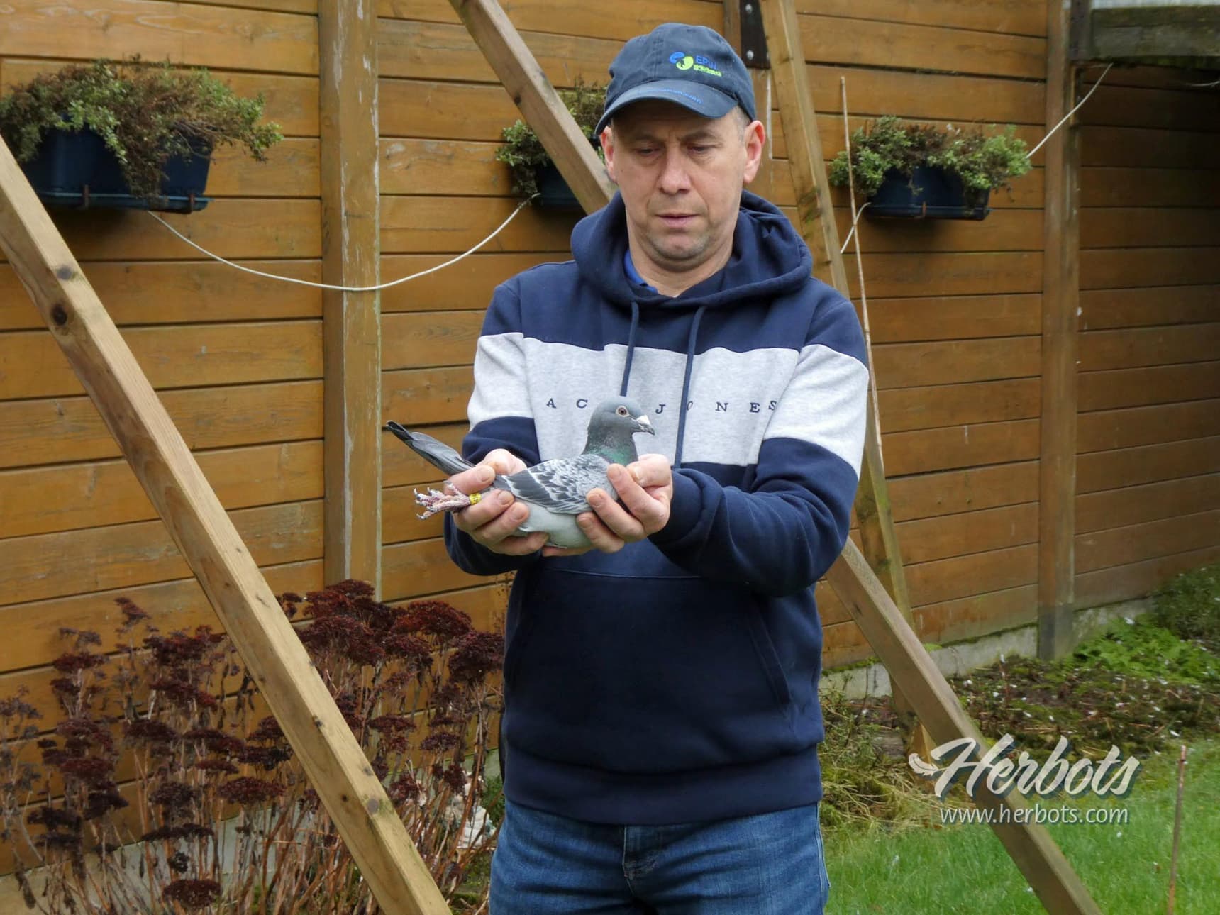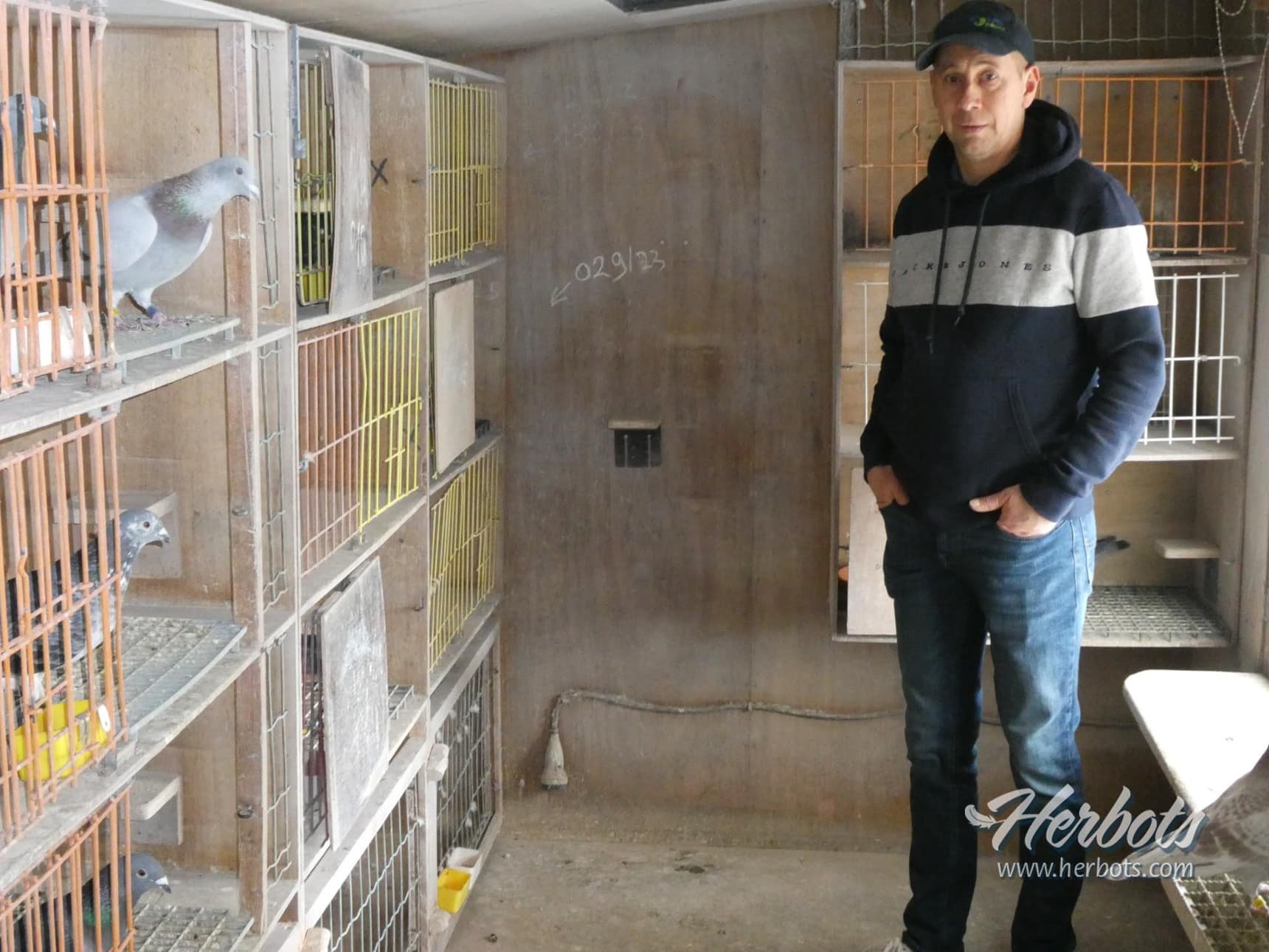 Als werkend duivenliefhebber is het niet eenvoudig maar zodra de dagen wat lengen worden de weduwnaars buiten gelaten . Op dit moment krijgen ze al een lichte mengeling want te vette duiven trainen niet aldus onze gastheer . Moeder des huizes Nicole ontfermt zich over de duivinnen , ze worden om 15u30 door haar buiten gelaten en wanneer “de meester” thuis komt roept hij ze binnen ! Daarna is het de beurt aan de weduwnaars wel te verstaan met goed weer , bij koude of regen zien ze de buitenlucht niet ! Einde Maart worden de manden van de zolder gehaald en kan er bij goed weer op geleerd worden . Meestal in het weekeind , Zaterdag en Zondag want tijdens de week is daar geen tijd voor . De duiven worden maximum vier a vijf keer weggevoerd ! Wat hun voeding betreft , na het opkweken van hun jongen worden ze op lichte kost gezet , want tijdens de kweek kregen ze al volle bak te eten . Dan wordt het 50 % Zuivering en 50 % Light voeding (Pro Light Van Robaeys ) . Tijdens het seizoen Maandag, Dinsdag, Woensdag en Donderdag Pro Light en op Vrijdag Pro Sport ! Op Zaterdagmorgen (dag van inkorven) ontvangen ze nog een voederbeurt Sprint van Aidi !