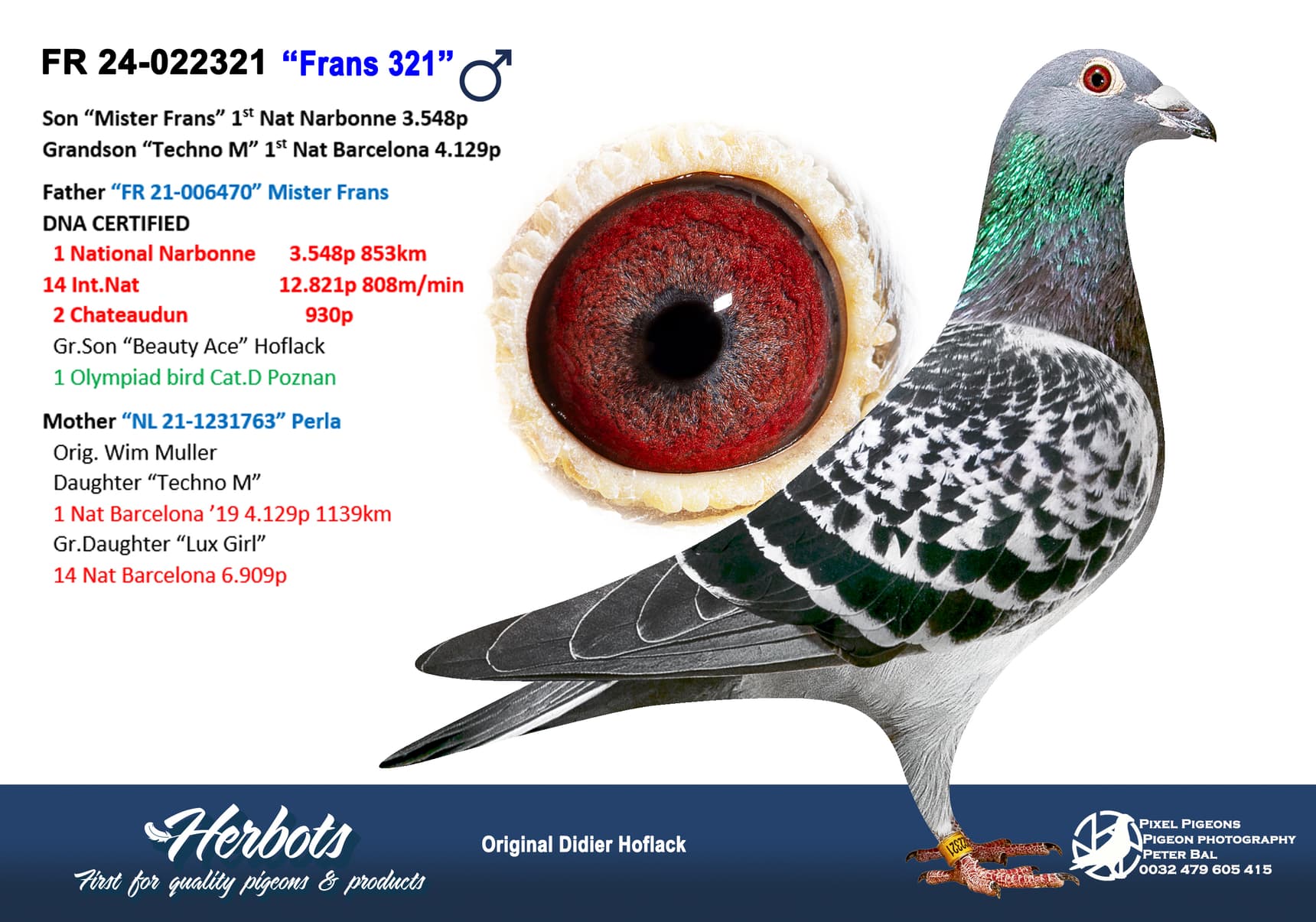 Dit is een halfbroer van de nieuwe wonderduivin “Mysty Girl” 1e Nationale Asduif Fond Frankrijk 2024 en 2e Nationale Asduif Halve Fond Frankrijk 2024.