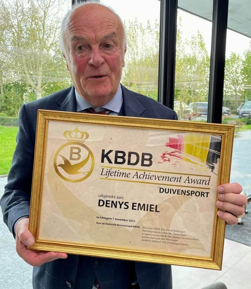 Geen wonder dat Emiel de “Lifetime Achievement award” van de KBDB in ontvangst heeft mogen nemen. Emiel heeft een stuk van de geschiedenis van de Belgische Duivensport geschreven.