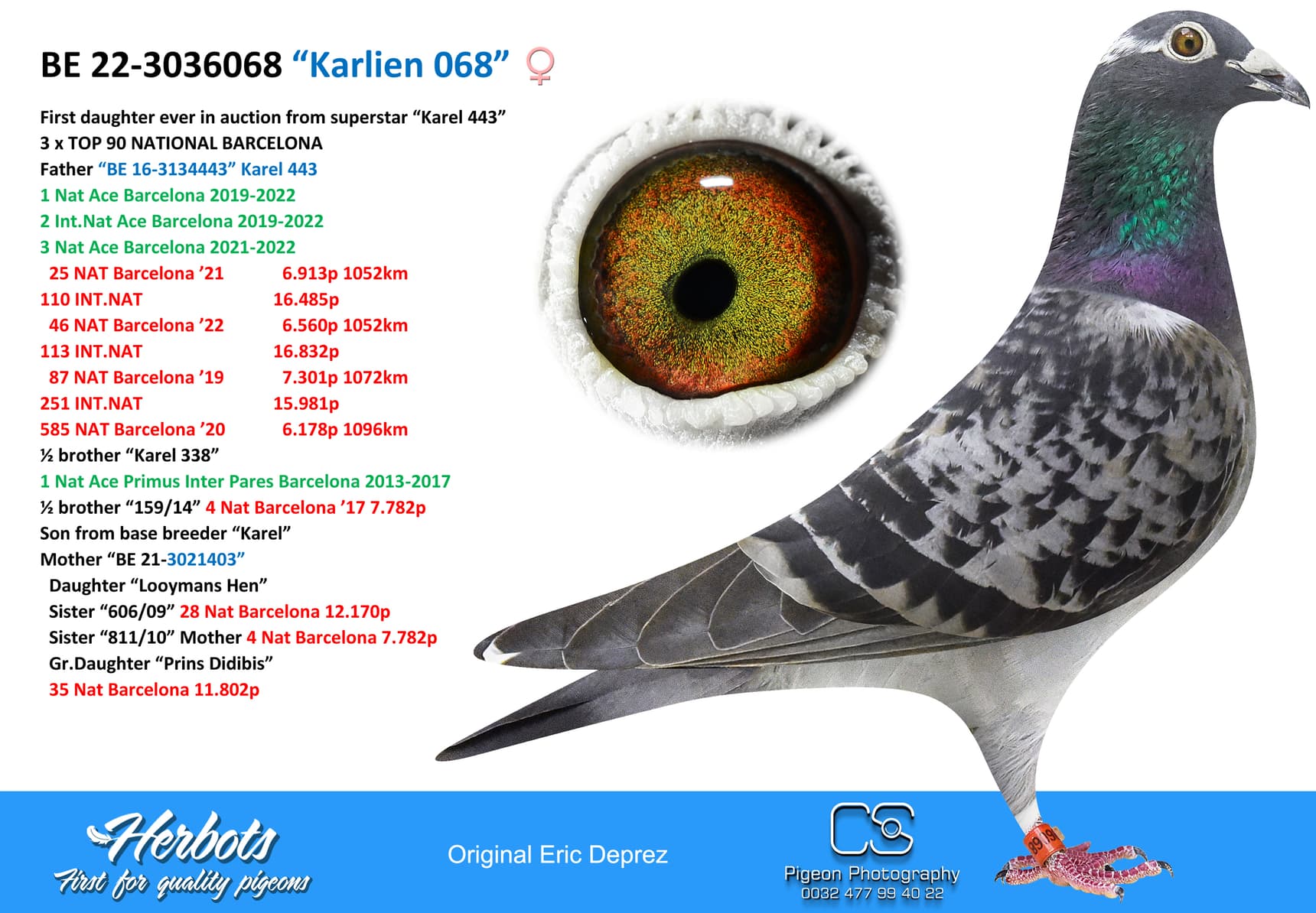 BE 22-3036068 “Karlien 068” is een prachtige Duivin net zoals haar vader.