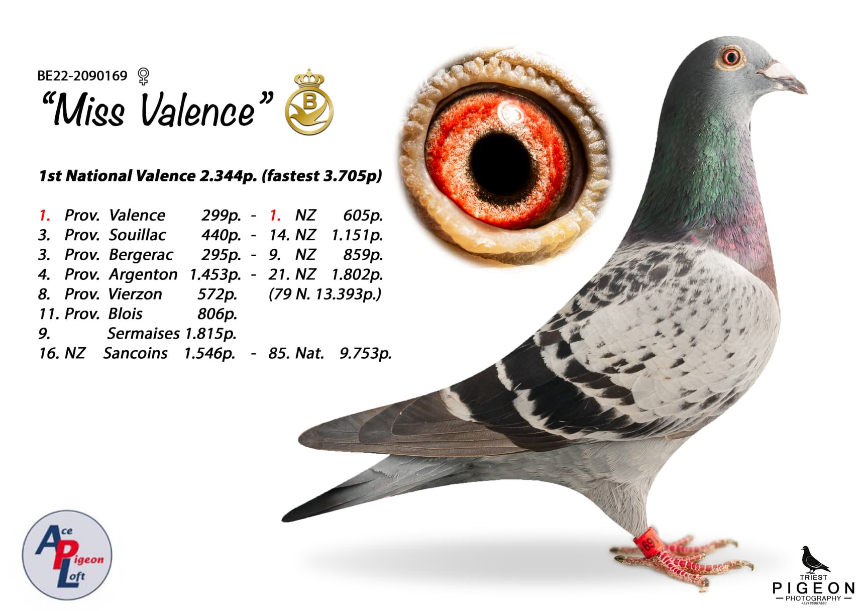 Ofwel was het de nationale winnares "Miss Valence", ofwel moeder van één van de andere asduiven.