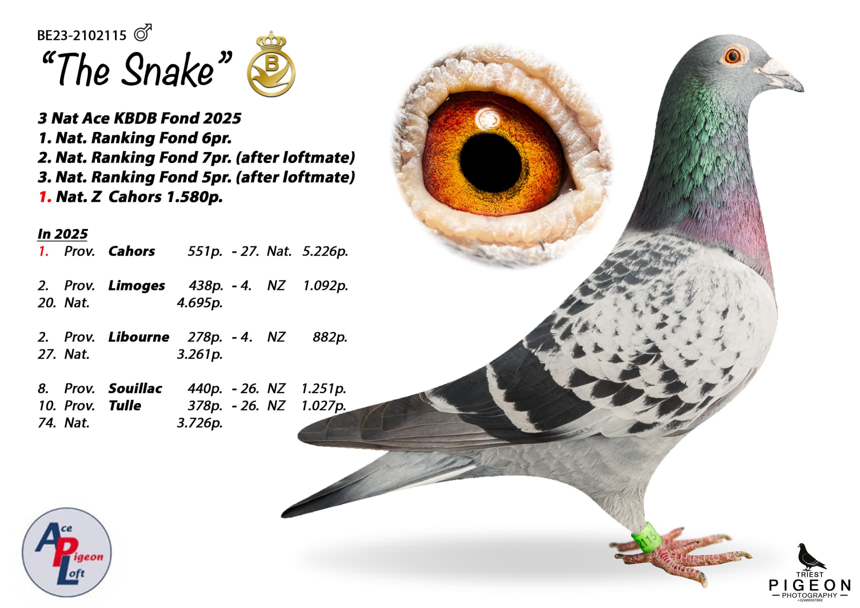 De laatste extra die in deze veiling werd toegevoegd is een volle broer van nationale asduif "Snake".