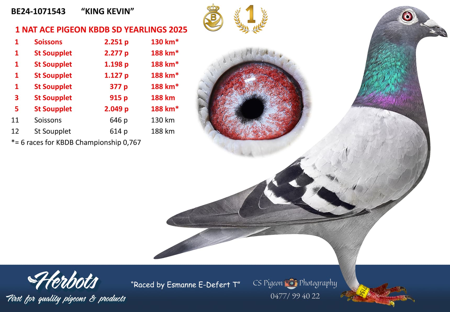 “King Kevin” won de nationale KBDB asduif titel met volgende 6 prijzen