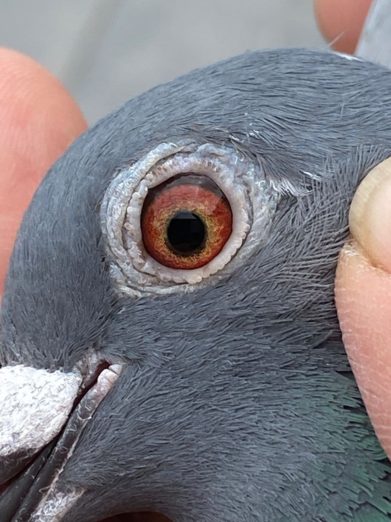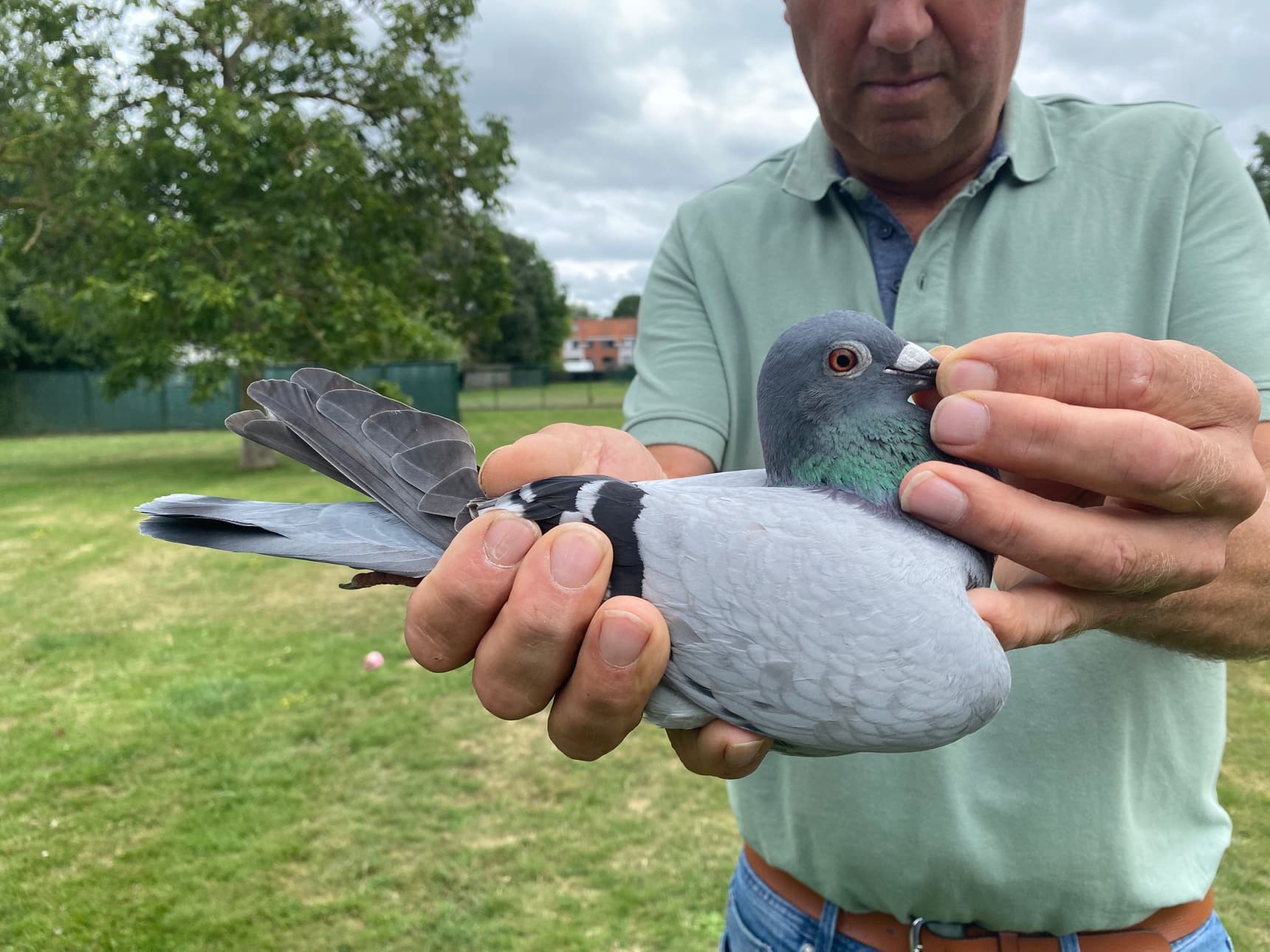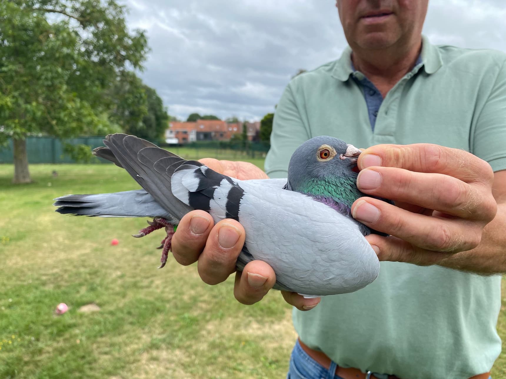 Een steengoede marathonduif kan hij nu toch al genoemd worden. Hij is gespeeld op klassiek weduwschap.