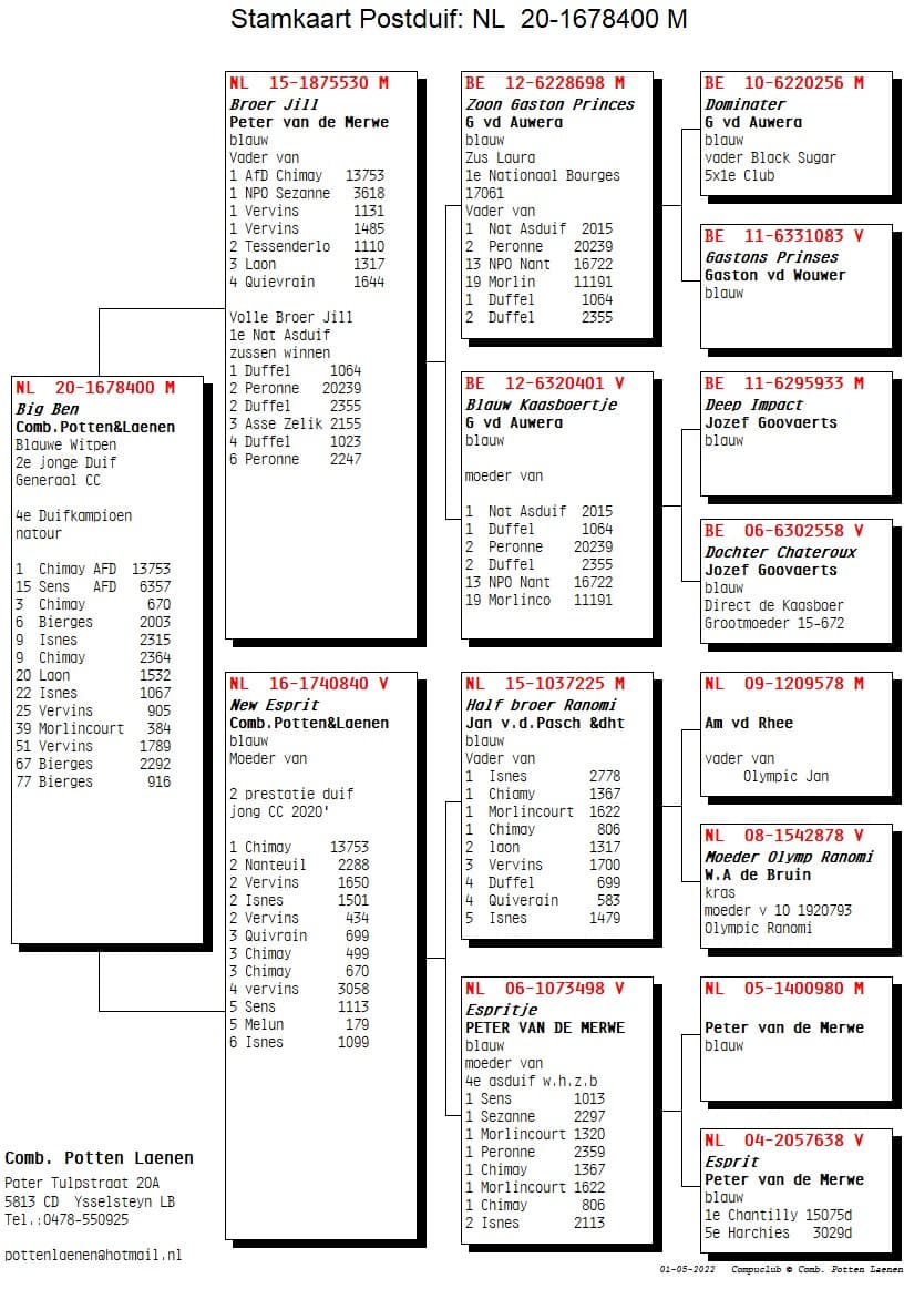 Zo won hun "Big Ben" (NL20-1678400), een zoon uit "Broer Jill" de 1e prijs Chimay tegen 13.753d. !