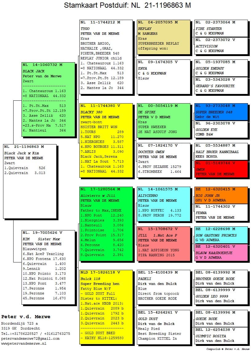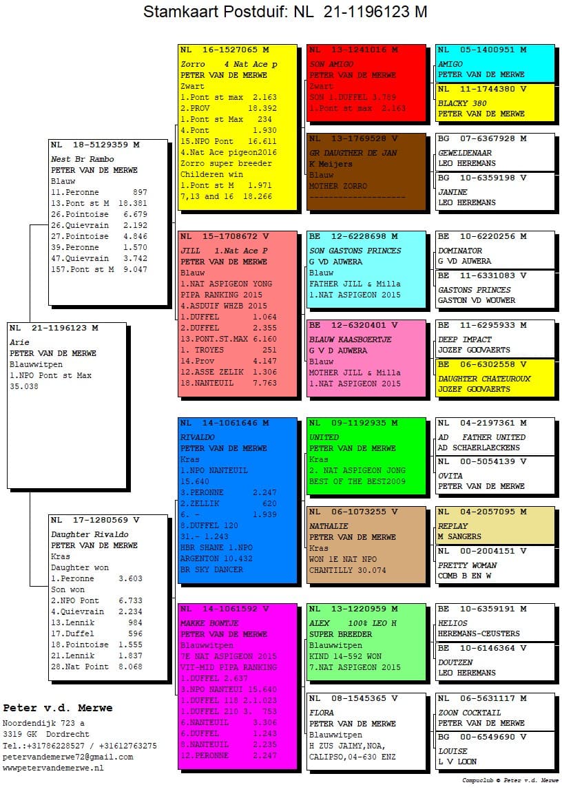 Terwijl Peter volop aan het recupereren is van zijn rugblessure hebben papa Arie en dochter Gwen zich op een ploeg vliegduiven gestort. We wisten al van vroeger dat Gwen het "duivenmelken" meer dan in de vingers heeft en het is dan ook niet verwonderlijk dat de topuitslagen niet uitblijven. De sterke basis van de Van de Merwe duiven bewijst nogmaals zijn overweldigende klasse
