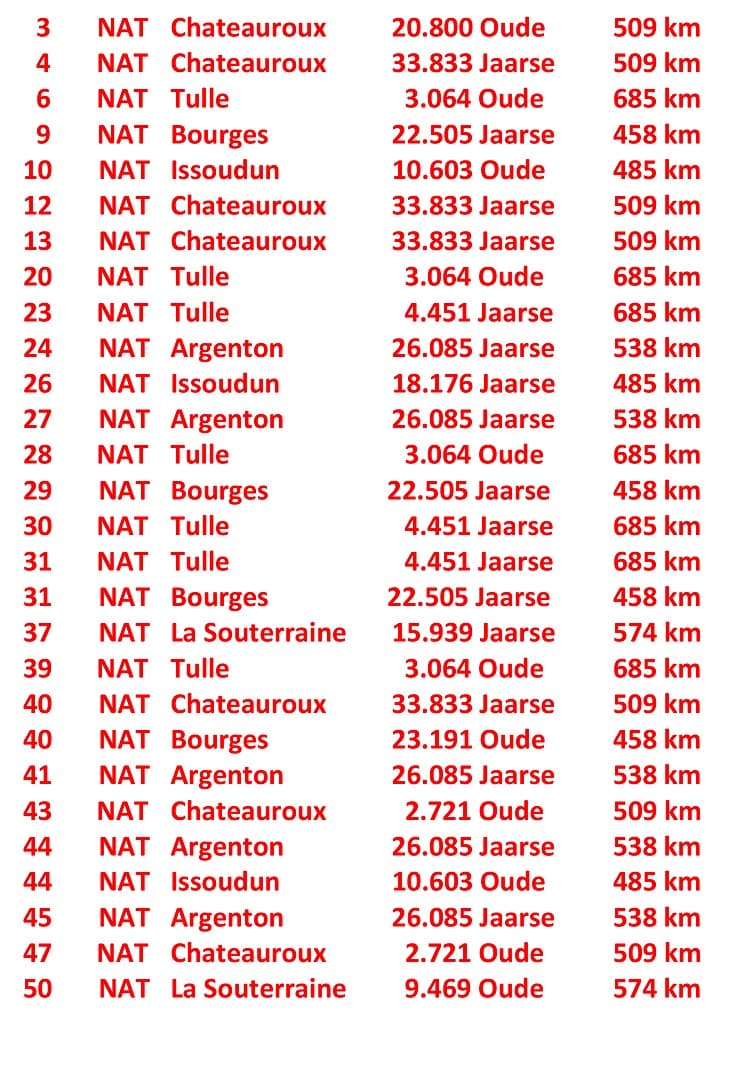 Chateauroux 2.508 Jaarlingen (Semi National ACRWB) 509 km : 1,2,3,4,5,6,7,8,12,14,15,16,21,23,24,25,26,28,29,30,31,32,33,34 (101/123)