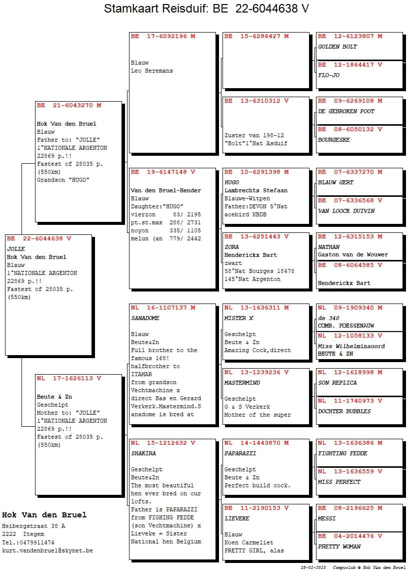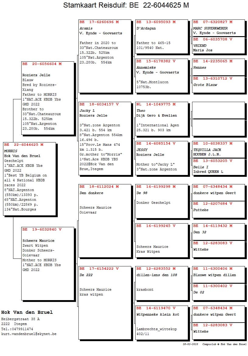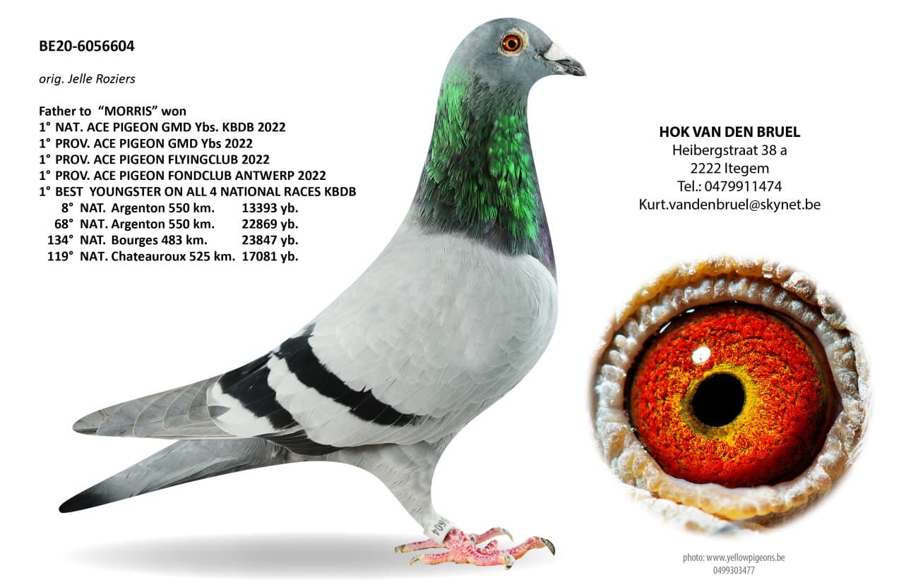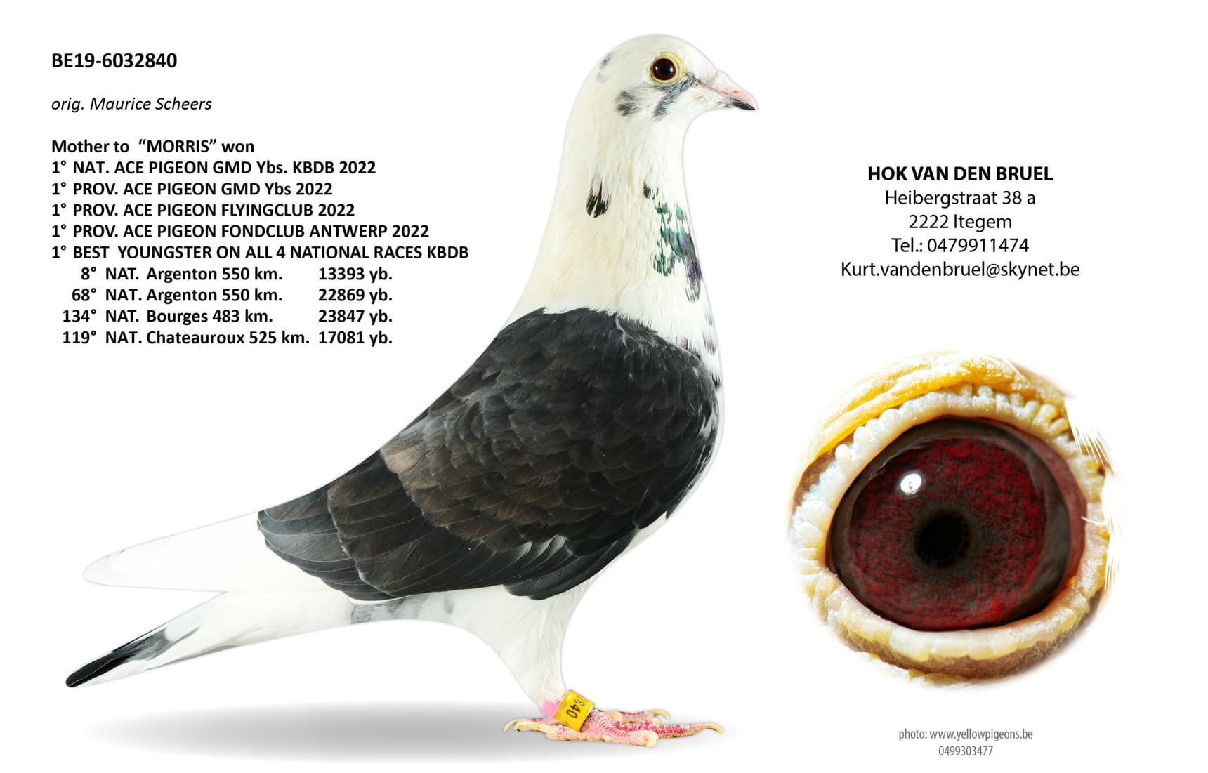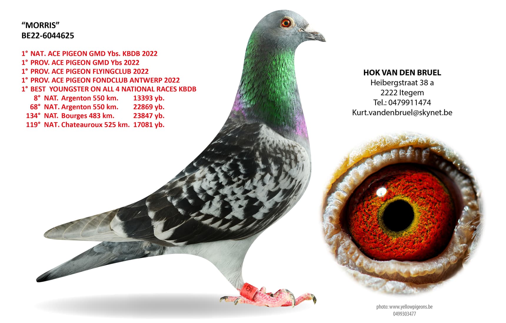 Voor de kolonie Hok Van Den Bruel uit het Antwerpse Itegem kon het seizoen 2022 na het behalen van de nationale overwinning op Argenton al niet meer stuk. Hun 2de duif op die bepaalde Argenton was superster “Morris” die later op het seizoen 1ste Nationale Asduif zware halve fond jonge KBDB werd en tevens ook de beste jonge duif was over 4 nationale vluchten. Een straffe stunt, een mooie dubbel en over 4 nationale vluchten het laagste coëfficiënt sinds deze ranking er is wanneer er 4 nationale vluchten worden georganiseerd.