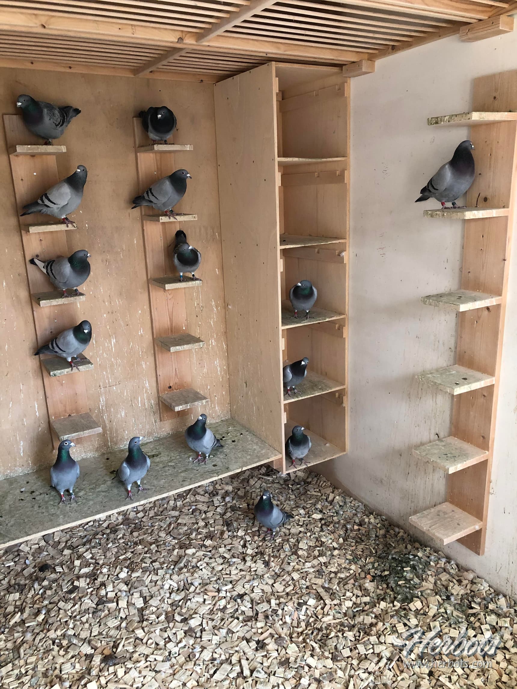 In 2023 zal het anders worden aangepakt. De duivinnen zijn begin februari gekoppeld en gaan een jong grootbrengen. Rond 20 februari komen ze dan terug buiten om de trainingen te hervatten als de doffers op de nesten zitten. Nadat de jongen van hen 15 dagen zijn gaat de duivin eraf om te voorkomen dat ze allemaal een 2de keer gaan leggen. De conditie is op dit moment prima want de duiven trainen heel graag. In het seizoen dan zitten de duivinnen overdag in een volière en ’s avonds gaan ze naar het rusthok. Bij de inkorving zien ze geen partners maar bij thuiskomst mogen ze wel enige tijd bij elkaar blijven.