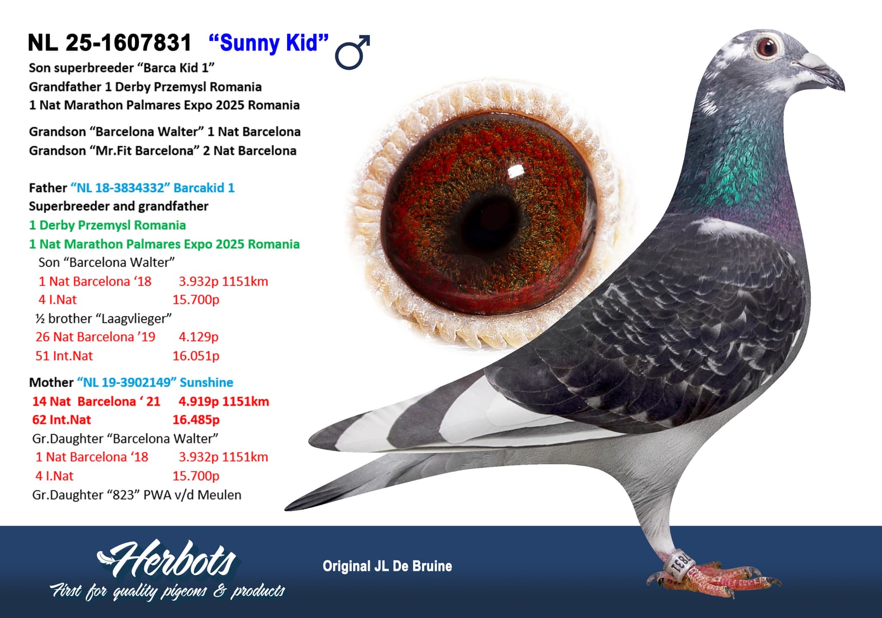 5 Int.Nat Barcelona 17.107d 2024 bij Vincent Vork ( Moeder is een dochter van “Bolletje Blauw” dus een ½ zus van “Mr.Fit Barcelona”. De moeder is ook een kleindochter van “El Cid” 1ste Nationaal Barcelona 3.912d )