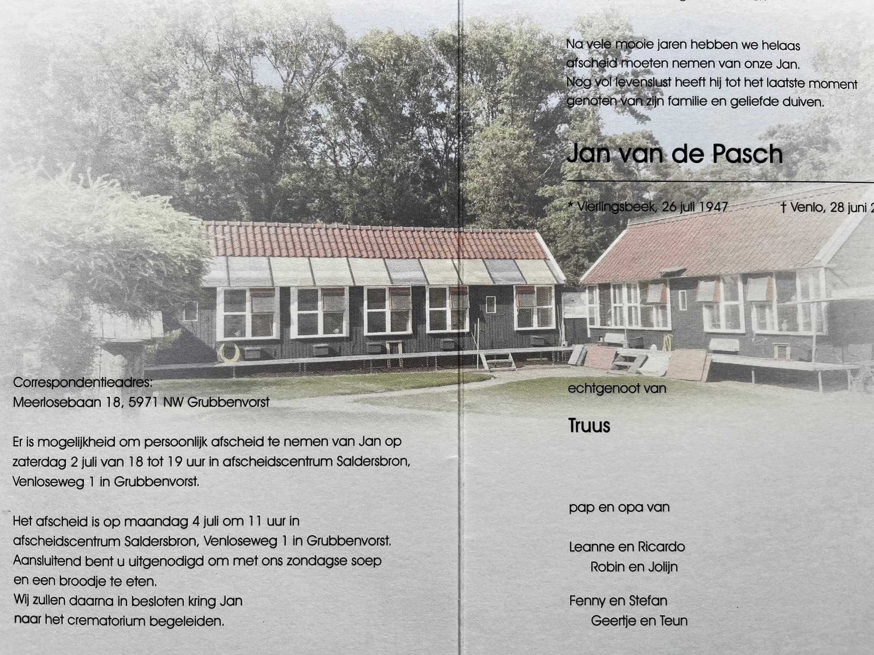 jan vandepasch ( grubbenvorst ) is heengegaan.