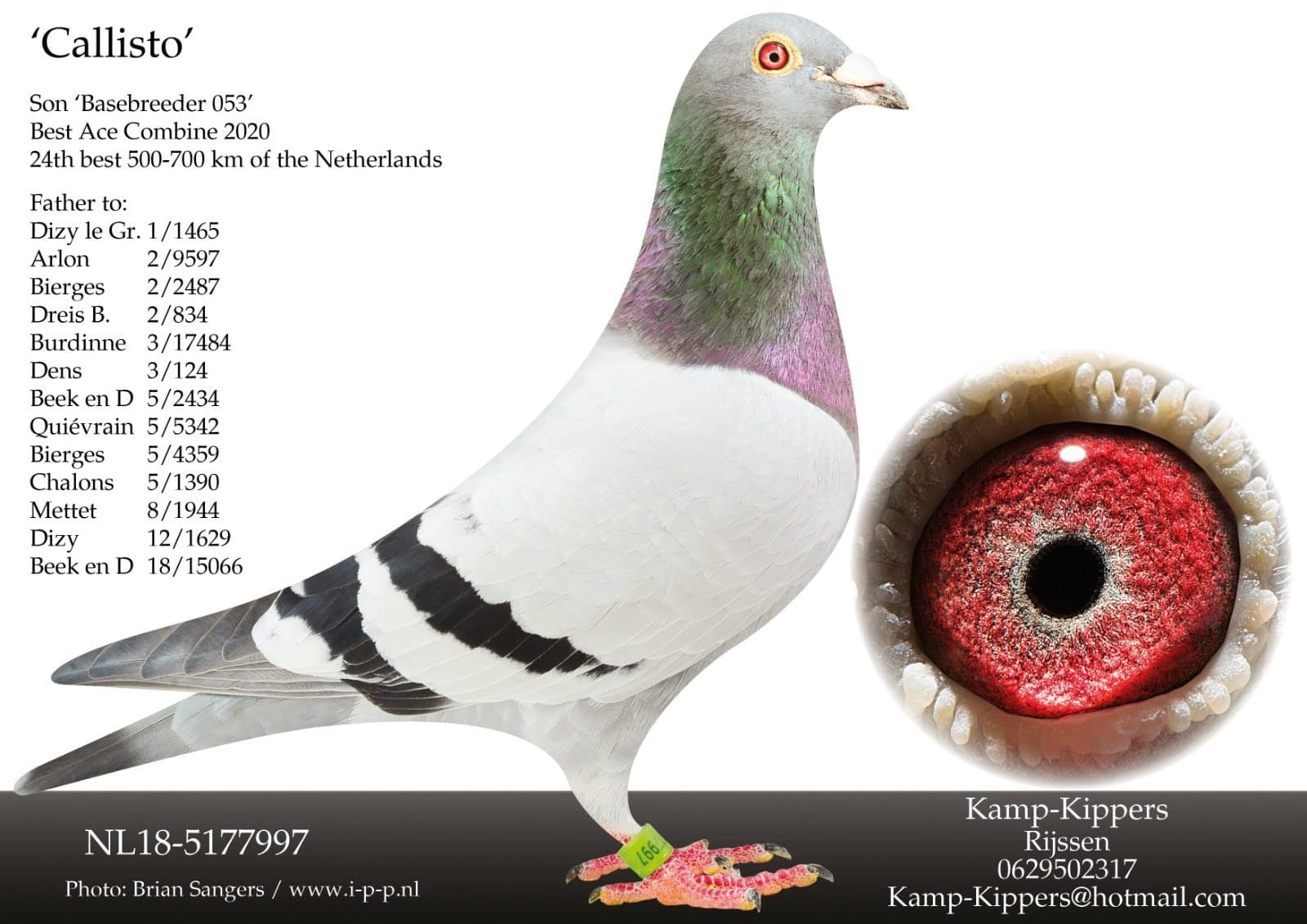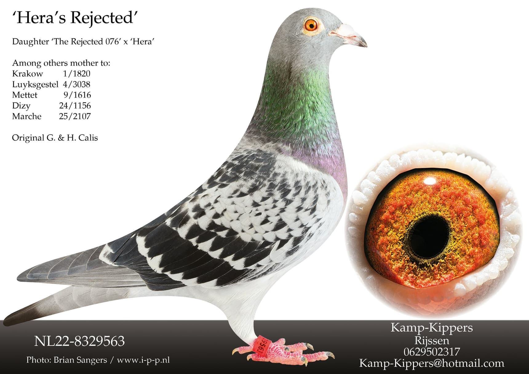 Op 26 april stijgen ze nog verder boven zichzelf uit met een dubbele overwinning. Vijf duiven eindigen bij de eerste acht van 14.755 ingezette. Twee topduiven vallen tegelijk op de klep, een moment om in te lijsten. De winnaars komen uit combinaties van Hera’s Rejected (G&H Calis) en Basebreeder 053, maar ook Dennis van Toor is weer prominent aanwezig in de afstamming, net als Maarten Huijsmans met zijn Ace Hen-lijn.