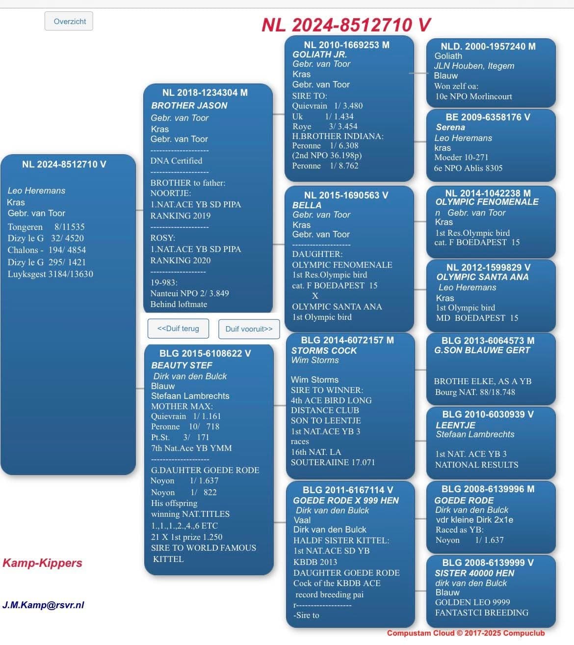 Hun succes is geen toeval. Het is het resultaat van het aankloppen bij de juiste duivenliefhebbers in het aanschaffen van duiven, een strakke selectie en een feilloze verzorging. Alles klopt, van de basis tot het laatste detail. De resultaten bewijzen het week na week. En daarmee is het oordeel helder: Kamp/Kippers is misschien wel het beste snelheidshok van Nederland in 2025.